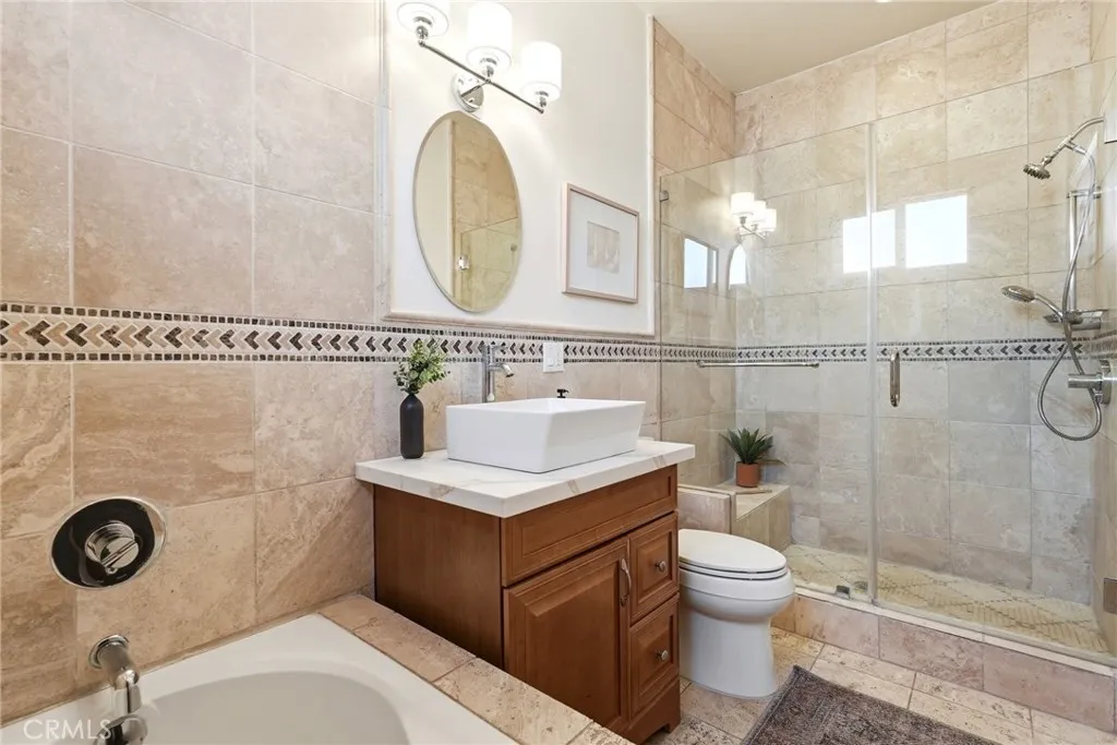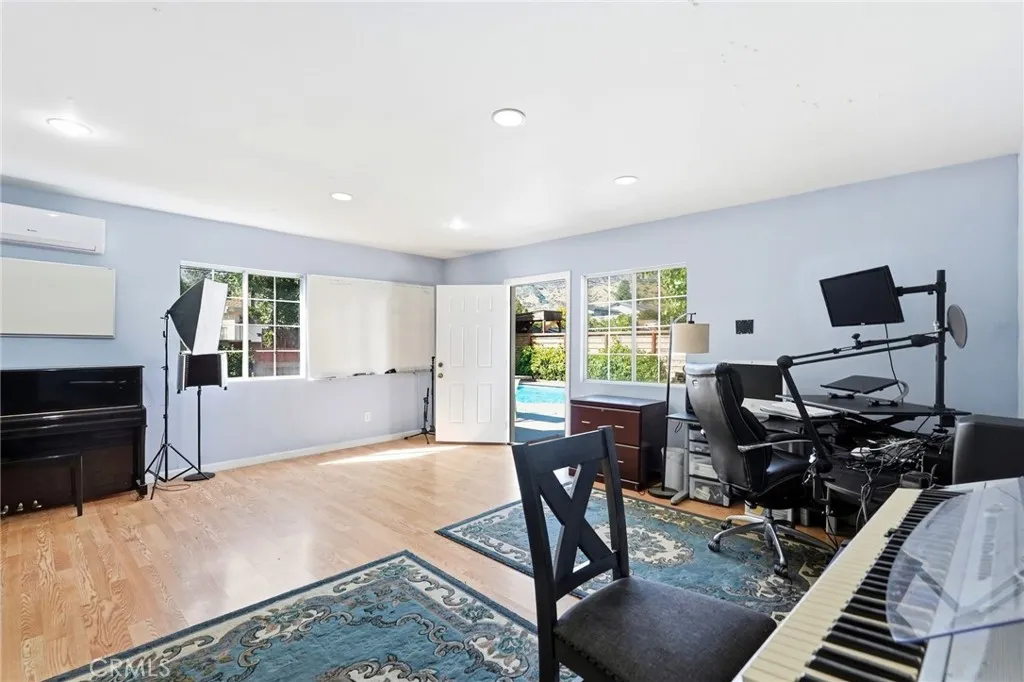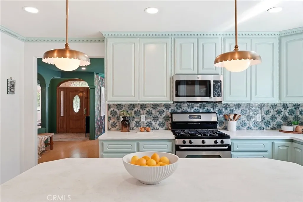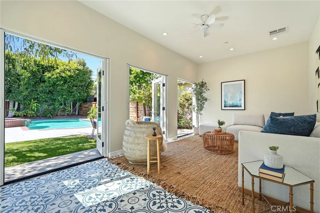 This is the one you’ve been waiting for - a true showstopper. This beautifully updated home offers thoughtful design and effortless California living with four full bedrooms and over 2250 sqft - an exceptionally rare find in Burbank. Designer-finished interiors include a freshly painted, color-drenched jewel-box living room with a cozy gas fireplace and adjacent spacious dining area under vaulted ceilings. At the heart of the home, the expansive kitchen impresses with newly refreshed cabinetry in a soft blue-green hue, complemented by all new finishes: tile flooring, Spanish-tile backsplash, and creamy white countertops. Abundant cabinets and counter space make the kitchen as functional as it is beautiful. Down the hall, the oversized primary suite is privately set apart, offering a serene retreat with an ensuite bath featuring a soaking tub and separate shower, a spacious walk-in closet, and an additional closet for extra storage. Three additional bedrooms are ideal for a large family or simply space to spread out. A shared hall bathroom features a double vanity and separate tub and shower. At the rear of the home a dreamy sunroom with patterned tile floors and multiple sets of French doors opens directly to the backyard, creating a light-filled second living area - the perfect place for morning coffee, creative afternoons or relaxed evenings with family and friends. A separate nook off the sunroom provides the perfect space for a home office or play area. Step outside and you’ll find your own private oasis: a sparkling heated pool and elevated waterfall jacuzzi surrounded by lush landscaping, mountain views and a generous yard dotted with fruit trees - including loquat, fig, citrus, and passion fruit vines. Whether you’re hosting lively gatherings or enjoying peaceful evenings under the stars, this outdoor space is designed for year-round enjoyment. Separately, the detached two-car garage has been converted with mini-split temperature control for valuable added flexibility as a large office, studio, or guest space in an additional 350 sqft. Systems including central heat/AC, double pane windows, huge attic space for storage, and EV charger are just a few of the features that make the house so comfortable and easy to enjoy. Ideally located within easy walking distance of Thomas Jefferson Elementary and the shops and dining along Glenoaks Blvd, this home offers style, comfort, and convenience in one of Burbank’s most desirable hillside neighborhoods.