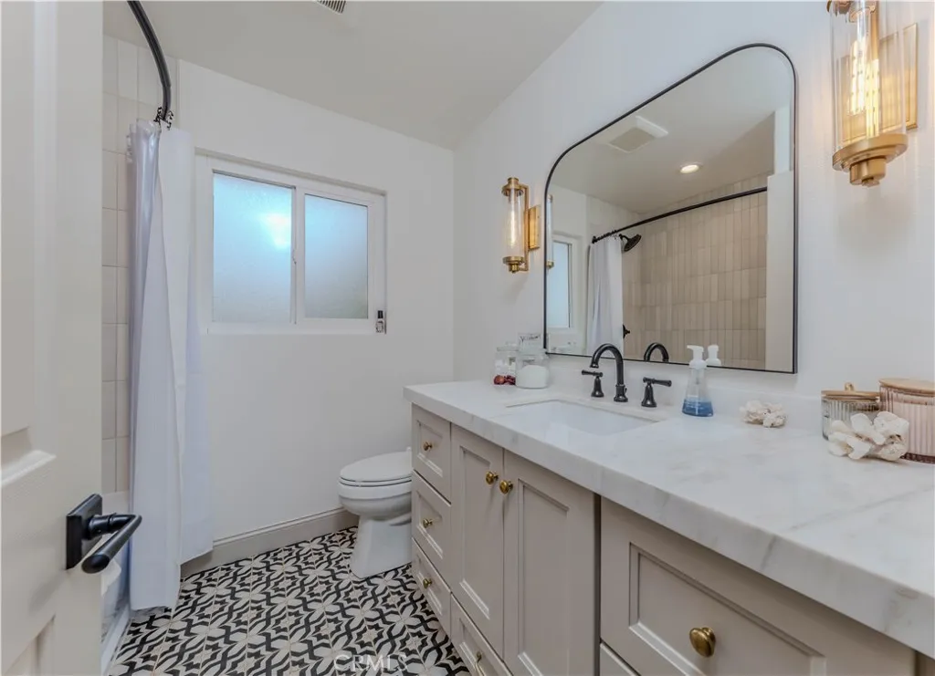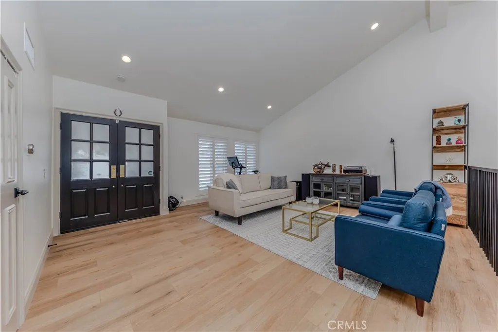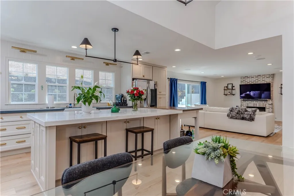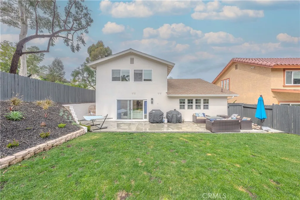 Nestled within a serene cul-de-sac on a desirable corner lot, this captivating home in the picturesque foothills of Mission Viejo offers a blend of modern elegance and comfortable living. With 4 spacious bedrooms and 3 beautifully appointed bathrooms, this residence boasts an impressive 2,290 square feet of thoughtfully designed living space. At the heart of the home lies the stunning entertainer's kitchen, a true chef’s delight. It features a generous island that invites friends and family to gather, along with an abundance of counter and cupboard space adorned with exquisite gold accent finishes that add a touch of sophistication. The kitchen effortlessly transitions into the warm and inviting family room, which is complete with a cozy fireplace, creating a perfect atmosphere for relaxation and family gatherings. Convenience is key with a thoughtfully designed downstairs bedroom and bathroom, ideal for guests or family members looking for privacy. The home is characterized by soaring ceilings that enhance the spacious feel and a step-up living room that adds a touch of architectural charm. Retreat to the tranquil primary bedroom, a spacious sanctuary that features stylish barn doors leading to an elegant ensuite bathroom. This luxurious space showcases modern fixtures, including a dual sink vanity and a large walk-in shower, providing a spa-like experience. The expansive walk-in closets, equipped with custom built-ins, offer ample storage to keep all your clothing and accessories organized. Step outside to the delightful walk-out patio accessible from the primary bedroom, a perfect spot to savor your morning coffee or unwind with an evening refreshment while enjoying the gentle breezes. Upstairs, two additional bedrooms provide more opportunities for accommodating family and guests, ensuring everyone feels at home. This exceptional residence is free from HOA restrictions and is perfectly located near premier shopping, lush parks, and highly-rated schools, along with effortless access to the I-5 corridor, making it a true gem in Mission Viejo.
