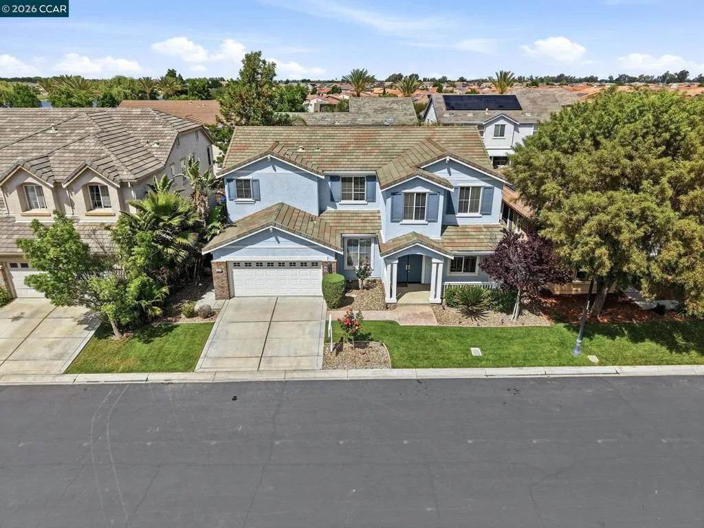Enjoy 6809 New Melones Cir. in Discovery Bay, a spacious 4 bedroom, 3 bathroom home located in the premier gated community of The Lakes at Discovery Bay. Built in 2005 and offering over 3,700sqft of functional living space, this well-maintained home features an open floor plan, large rooms, and soaring vaulted ceilings throughout. Step through the inviting foyer past the bonus office and front living room into the expansive open-concept kitchen, dining, and family room—perfect for everyday living and entertaining. The chef’s kitchen is equipped with a large granite island, abundant cabinetry, built-in oven & microwave, gas cooktop with hood, large pantry and a breakfast bar. The spacious family room features a cozy gas fireplace, high ceilings, and seamless access to the backyard. The first-floor primary suite offers comfort and convenience, while a full guest bath and laundry room leading to the 3-car garage complete the main level. Upstairs includes 3 additional bedrooms, a full bath, a massive versatile loft ideal for gatherings or game nights, and an additional flex space perfect for an office or play area. Enjoy the low-maintenance backyard with mature palm trees and a large patio, ideal for BBQs and outdoor entertaining. Residents of The Lakes enjoy access to scenic walking trails, multiple lakes, greenbelts, parks, playgrounds, and picnic areas. Don’t miss this exceptional opportunity!