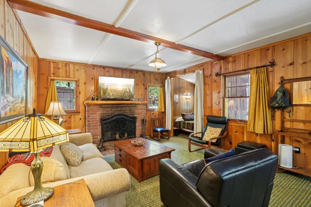 Step into the kind of mountain escape buyers dream about--this charming 1946 cabin is tucked beneath the pines in a peaceful Idyllwild setting that instantly feels like a retreat from the everyday. Inside, the cozy living room welcomes you with a classic brick fireplace, creating the perfect spot for quiet evenings and weekend getaways. The dining area features a free-standing stove, adding both warmth and that sought-after rustic character buyers love. With two comfortable bedrooms, a 3/4 bath, and a flexible bonus sleeping space, there's room to host, relax, or create your own private nook. What truly sets this property apart is the added studio guest cottage--complete with its own 3/4 bath and stacked washer/dryer--offering incredible versatility for guests, extended stays, or even a creative studio. Outside, enjoy your morning coffee or unwind in the evening on the covered front patio, surrounded by towering pines and the peaceful sounds of nature. The spacious outdoor patio makes entertaining effortless while embracing the serene mountain lifestyle. Properties with this much character, flexibility, and true Idyllwild charm don't come along often. experience it for yourself!