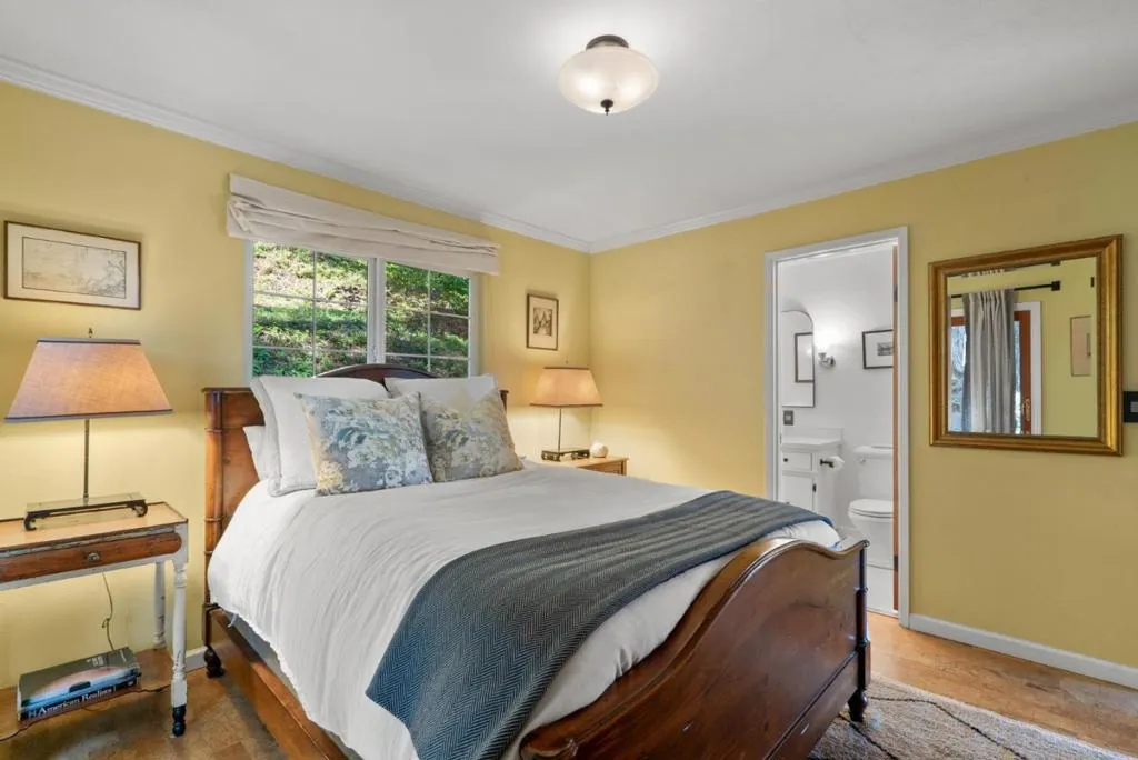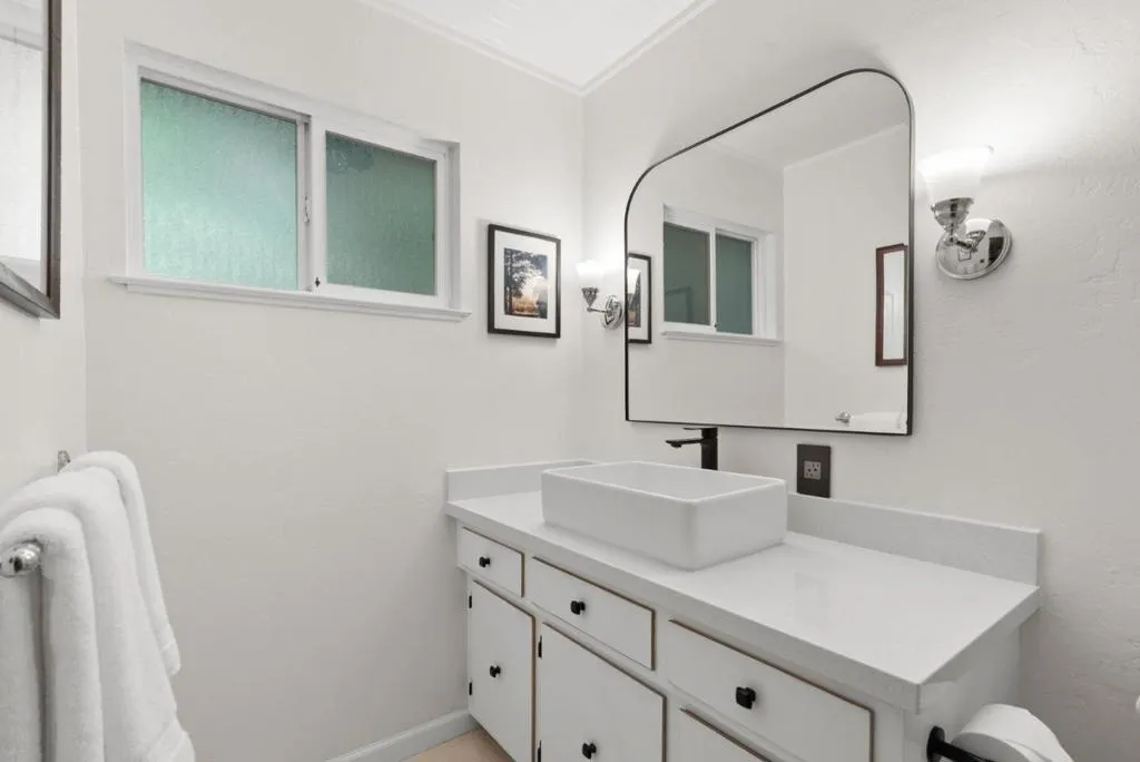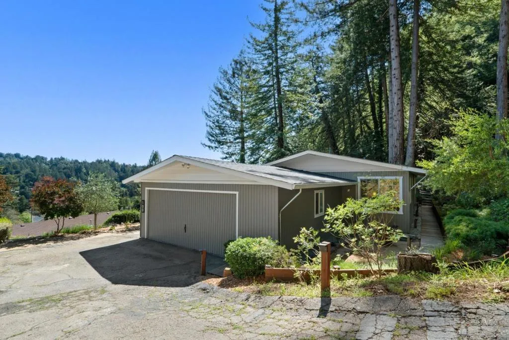 Welcome to 100 Camino Sinuoso, Scotts Valley. This intimate retreat is perfect for anyone looking for a space to call their own. An enchanting, windy road leads you to a secluded half-acre parcel perched above a serene mountain valley. Ideally situated on this parcel sits an adorable single-level 2-bedroom, 2-bathroom ranch-style home. Designed to prioritize indoor-outdoor living and maximize the sweeping valley views, this home features an open floor plan, large windows, and sliding glass doors to a spacious back deck. The recently updated kitchen boasts a breakfast bar, walk-in pantry, new quartz countertops, stainless steel appliances, and a chic farmhouse sink. One bedroom is tucked away on each side of the home, providing great separation of space for family members and guests. Dramatic wide plank cherry wood floors, solid wood doors, vintage-inspired door hardware, plentiful skylights, abundant storage, attached 2-car garage, detached carport, and a garden shed round out the list of amenities. Whether you're planting an edible garden on the lower portion of the property, enjoying coffee with a view from the back deck, or basking in the soothing sounds of nature while contemplating life's big questions, one thing is certain: this is it...your private refuge...this is Home.