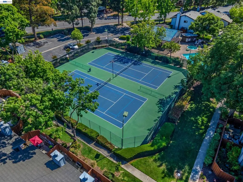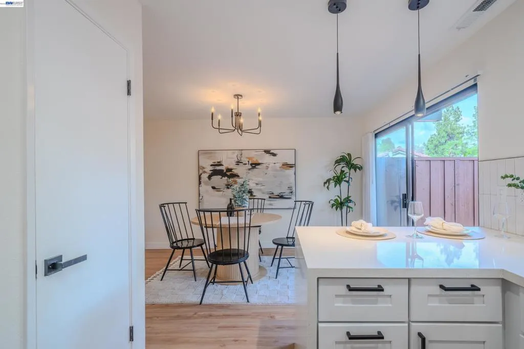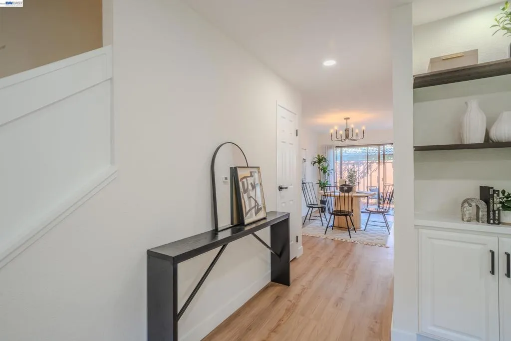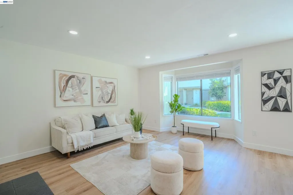 Welcome to this charming updated two story townhouse nestled in the vibrant Newark community. This property offers a blend of modern living having 3 bedrooms & 2.5 baths. The open living area welcomes you with a large bay window, recessed lighting & decorative electric fireplace with a remote control. Also, flanked by built-in shelving for a cozy ambience. 1/2 bath downstairs with eat-in kitchen that can act as a dining area. Sliding door which leads to adjacent patio & landscaped yard with privacy entry & storage shed. Complete turn-key with tasteful updates; white oak vinyl plank flooring throughout, decorative lighting & top to bottom professional finishes. Designer type kitchen complete with a Samsung SS appliance package, Quartz countertop with breakfast bar & pantry area. Updated baths with added rainfall style shower for spa like experience. Upstairs primary suite with exceptional clean & modern designs. Residents enjoy HOA amenities such as a pool, tennis courts among others. Easy access & walking distance to supermarkets, retail stores & restaurants. Also, near Newark Mall, Costco, Tesla & Mass Transportation such as HWY 880 & 84. This home offers both modern living & convenience. A True Gem!