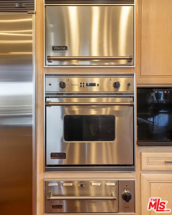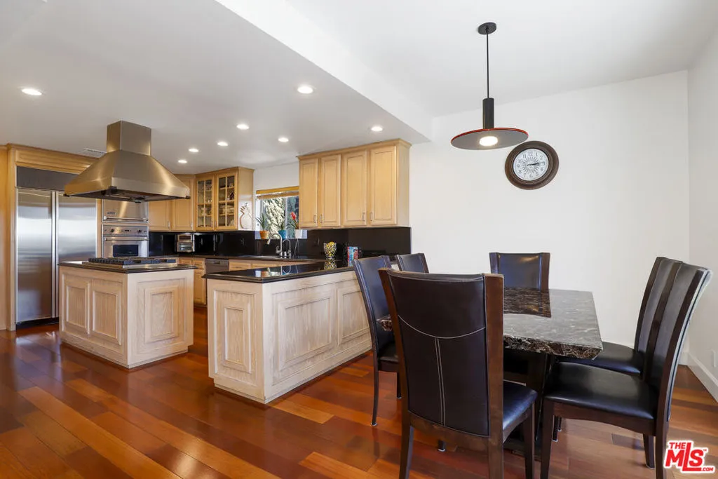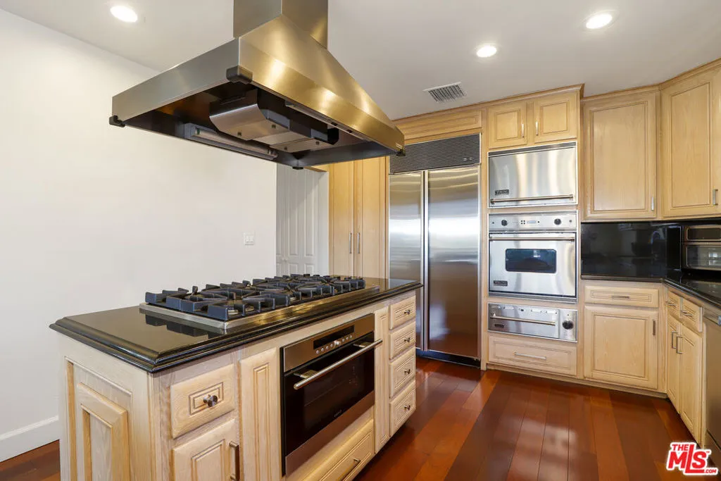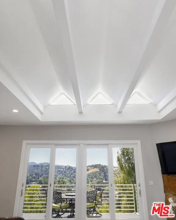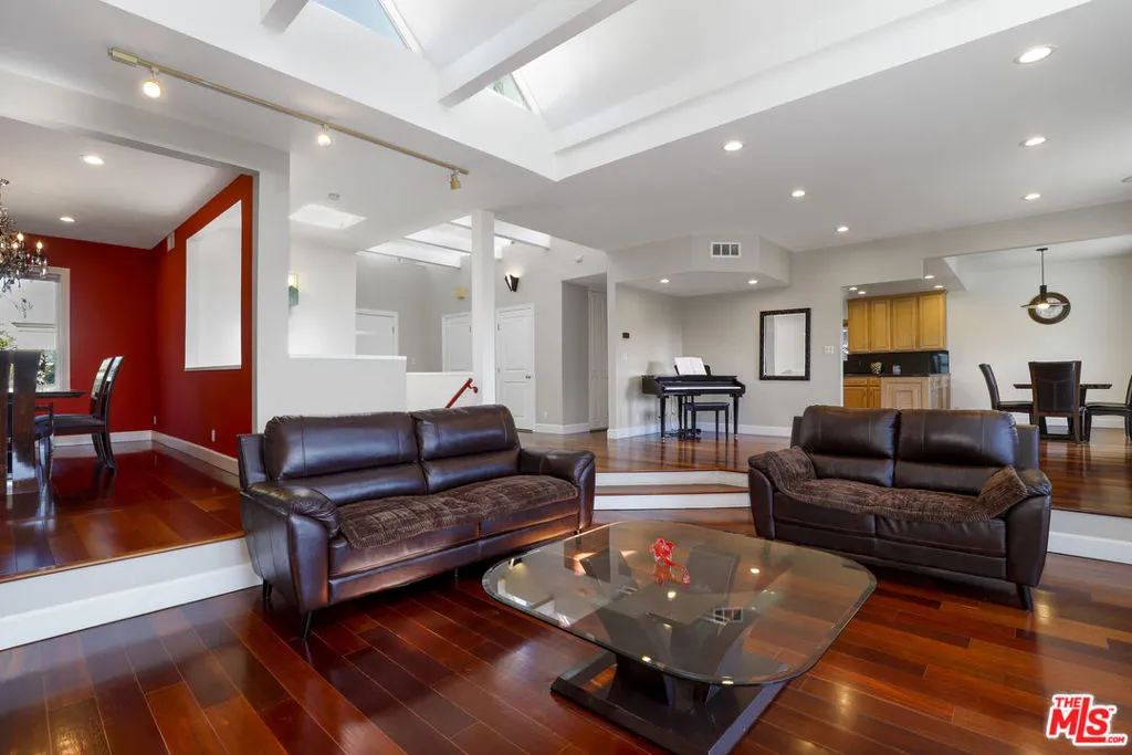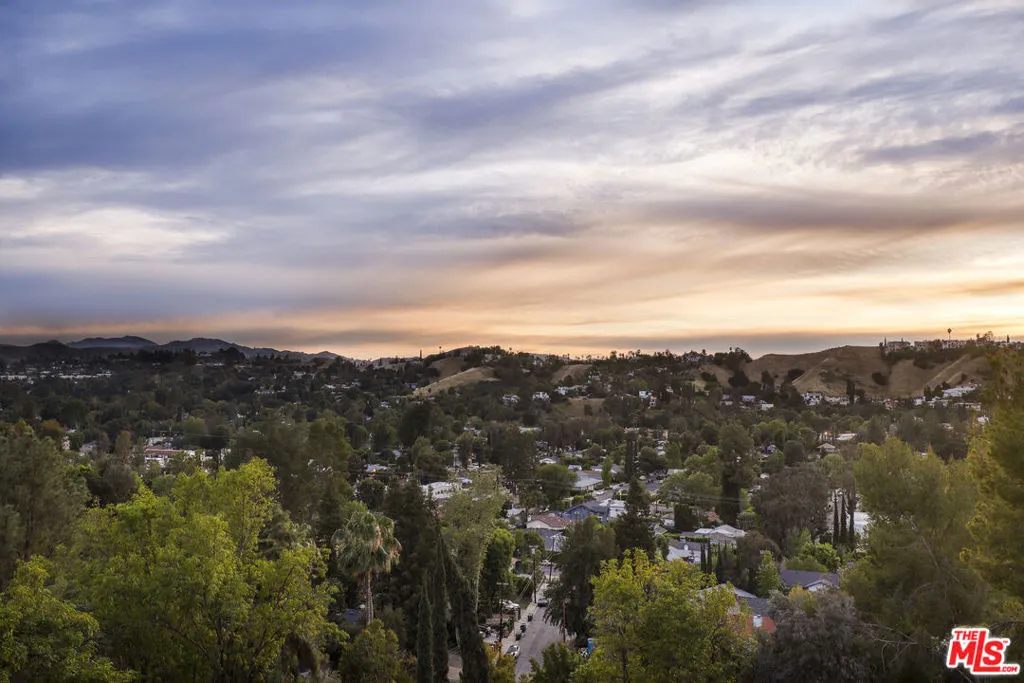 Proudly presenting a refined, architecturally striking residence with unobstructed views that blends sophistication, quality craftsmanship, and timeless design! An impressive entry welcomes you into a gracious foyer, showcasing rich solid Brazilian Cherry wood flooring that flows beautifully throughout the upper level. The home features an expansive open floor plan ideal for both elegant entertaining and comfortable everyday living. A spacious formal dining room leads to a dramatic step-down living room highlighted by a fireplace, soaring cathedral ceilings, beautifully designed skylights that illuminate the living space, and a stunning wall of glass doors that open to an inviting outdoor view deck, creating a seamless indoor-outdoor experience. Adjacent to the living area is an expansive family room featuring a striking circular architectural window that fills the space with natural light and distinctive design character. The chef's gourmet kitchen is thoughtfully appointed with top-tier appliances, including a six-burner Viking cooktop, Wolf steam convection oven, an additional Viking oven, and a full-sized Sub-Zero refrigerator, offering both style and performance for culinary enthusiasts. A beautiful Brazilian Cherry staircase leads to the lower level, where the generous primary suite provides a private retreat complete with its own fireplace and balcony. The spa-inspired primary bath includes a large walk-in sauna, an oversized soaking tub, a separate toilet and bidet area, and an adjoining flexible space perfect for a home gym, private office, or wellness room with its own entry/exit to the outdoors. Also on the lower level are two additional well-proportioned bedrooms and a spacious laundry room. Set on a lot of over 12,000 square feet, the backyard offers a gentle downslope while remaining fully usable, presenting wonderful opportunities for outdoor living, entertaining, or creating a personalized landscape retreat. A rare offering that combines architectural character, luxurious amenities, and breathtaking views an exceptional place to call home.