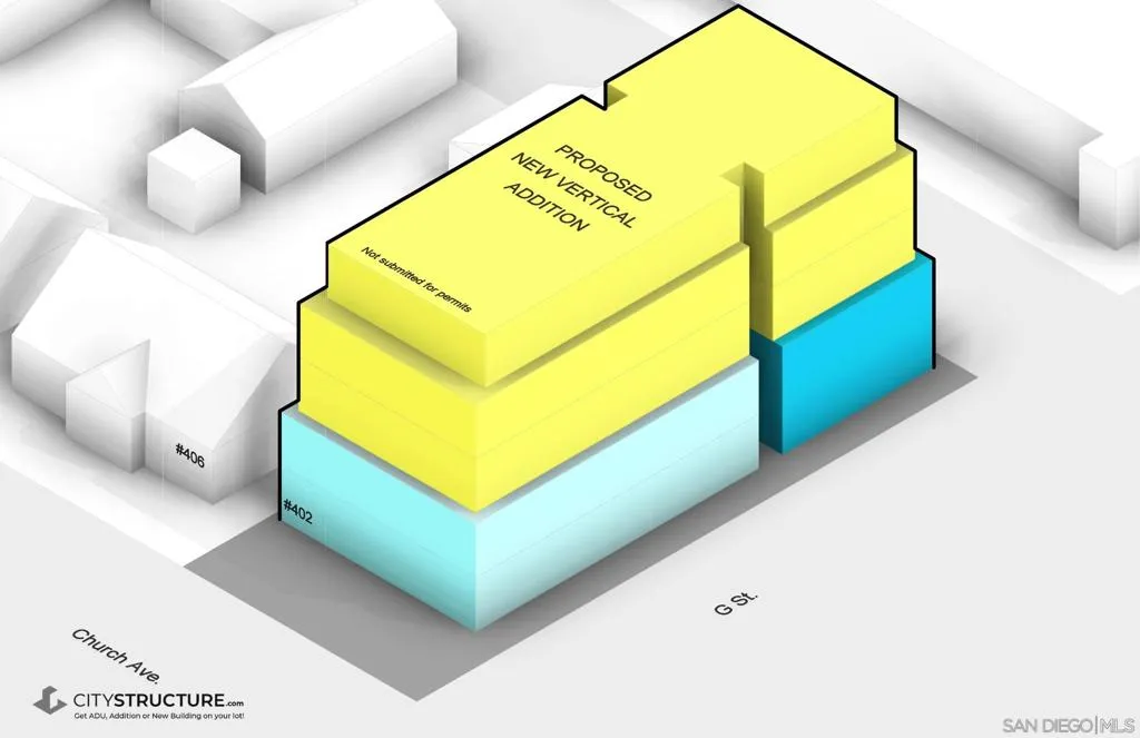 PRIME MIXED-USE REDEVELOPMENT PROPERTY!! Multiple redevelopment scenarios may be possible from 49 AFFORDABLE UNITS + 8 ADU's; OR 10 Lots/INDIVIDUAL TOWNHOMES; OR 10 Units + 8 ADU's; or build 2 TOWNHOMES OR 6 ADDITIONAL UNITS to replace commercial Mechanics Shop. Keep the four residential units in place while entitling and building out back two buildings for income. Or Mechanic Owner/User with 4 Residential Income Units on Front 2-Story building. This property has a variety of options and potential for a future investor or developer from small projects to large affordable units. Bring your developers large or small as SB684 paves the way. All tenants on M-M with lower than market rents for value add. 10 % increases will bring this to approx. TO A 5.22% CAP. Both buildings insured separately connected by emergency exit exterior 2nd- floor wooden staircase attached to both buildings. Gated property, on corner of Church Ave. and G St- WITH LEGAL ADDRESSES OF 402 CHURCH FOR UNITS #2(2B/1B $1870/m) , #3(2B/1B $1980/m) & #4(2B/1B $2200/m) + each pay utilities, except water; Unit #282 G ST. (2B/2B $2300/m + utilities, except water) AND MECHANICS SHOP #286 G ST. ($2500/m + all utilities including water)one block off 3RD AVENUE PROMENADE- FAMOUS Walking Retail, Restaurant & Commercial District with Mass Transit. MECHANICS SHOP SEPARATELY METERED; TENANT PAYS WATER & G&E. ALL FOUR RESIDENTIAL UNITS SEPARATELY METERED FOR SDGE. LANDLORD PAYS WATER ON 4 RESIDENTIAL UNITS. 2B/2B AT 282 G STREET HAS 2 POINT INGRESS/EGRESS AS WERE LEGALLY CONVERTED RESIDENTIAL UNITS ONCE OFFICES. TROPHY PROPERTY- 1ST TIME ON THE MARKET IN 25 YEARS! This property offers a ton of VALUE ADD with lower than market rents and/or redevelopment possibilities. Owner/User opportunity for Mechanics shop and possible SBA. All tenants are on M-M. The 3rd Avenue Promenade is a block off from property offering mass transit, restaurants, commercial district and retail. Seller pride of ownership shows in maintenance for property. Recent large capital improvements include roofing, plumbing sewer and jetting Fenced in Residential Units have vinyl flooring, vinyl windows with blinds, security screen doors, ceiling fans in well sized bedrooms, built-ins and all water heaters have been replaced in last 3-5 years. Property is well lit and has 8+/- exterior cameras and a gated courtyard. Garage has bathroom, 2 parking spaces, in ground lift, two roll-up doors, small office, upper storage, flat roof and alley access. Garage separately metered. Mechanics shop pays own water and utilities.