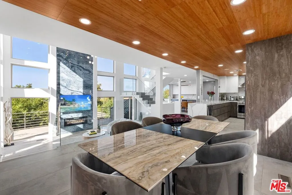 A Rare Estate of Uncompromising Refinement South of Ventura Boulevard. Rare opportunity to acquire a fully remodeled luxury estate in the coveted Royal Woods enclave of Sherman Oaks, south of Ventura Blvd. Set on an expansive 14,112 sq ft lot with 3,716 sq ft of refined living space, this residence offers a level of quality and craftsmanship that would be exceptionally difficult to replicate at today's construction and labor costs. Comprehensive top-to-bottom renovation completed 2023 new stucco, electrical, plumbing, flooring, and custom designer bathrooms throughout. Interior features soaring ceilings, floor-to-ceiling windows, and a sophisticated European-style kitchen with premium stainless steel appliances. Thoughtfully curated layout includes a custom entertainment room with built-in bar and karaoke room, upper-level family room with vaulted ceilings and fireplace, formal dining, and a luxurious primary suite with spa-inspired fully remodeled bath. Striking floor-to-ceiling glass-walled gym/executive office. Upper-level guest and primary bedrooms with breathtaking valley views. Outdoor spaces are designed for large-scale entertaining: waterfall, koi pond, covered patio, modern pergola with full outdoor BBQ kitchen, and wrap-around front patio with sweeping valley views. Additional features: dedicated office, whole-house water softening system, in-ceiling sound system, and comprehensive security/alarm system. Moments from the 405 & 101, Ventura Blvd dining and shopping, and area hiking trails. Properties of this caliber, location, and lot size in Royal Woods rarely become available. Showings by appointment only text agent to schedule.