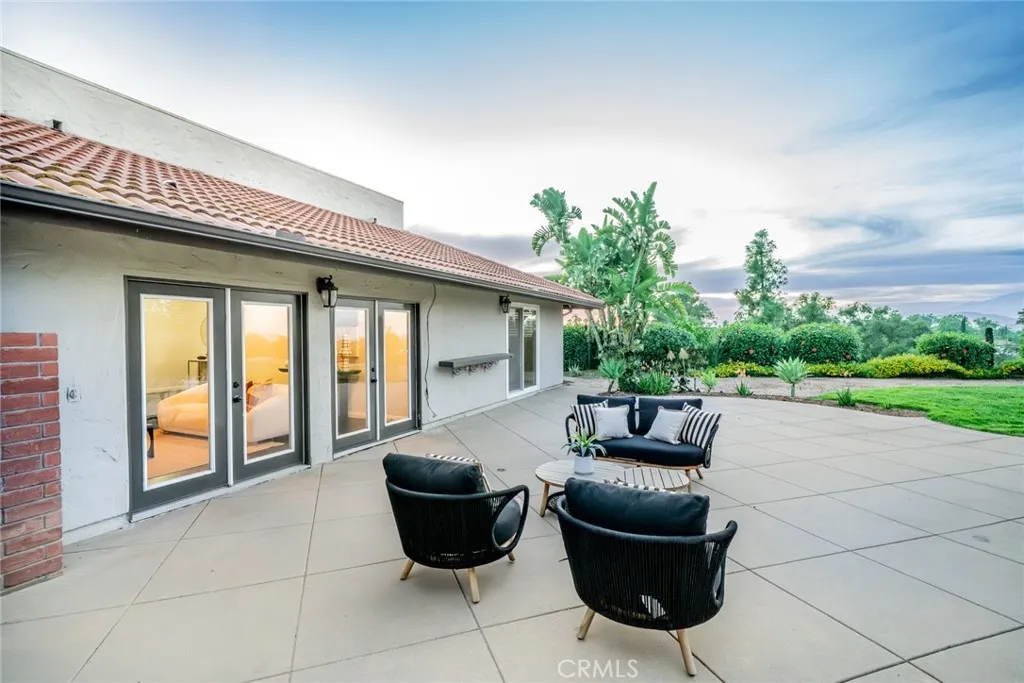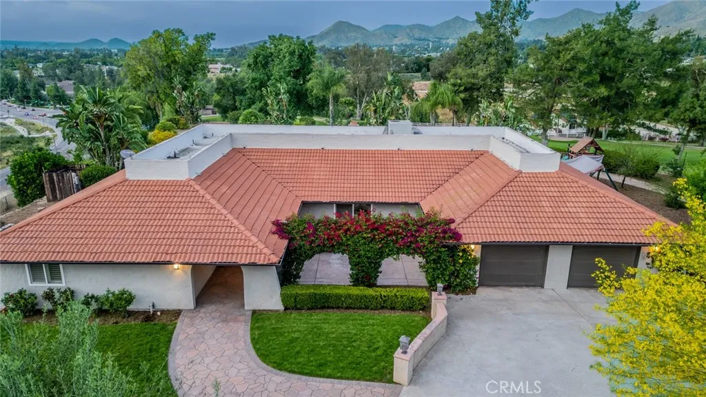 Nestled at the end of a peaceful cul-de-sac in a desirable Riverside neighborhood, this exquisite pool estate home offers a rare combination of privacy, elegance, and expansive outdoor living. Sits on an impressive 45,738 ft. lot, this beautifully appointed residence features 4 spacious bedrooms, 2.5 bathrooms, and a 3-car attached garage. From the moment you enter, the home reveals its distinctive character and warm ambiance. The main living areas are enhanced by stunning laminate and travertine flooring throughout the first level, creating a refined yet practical foundation for everyday living. The living room is a showpiece, highlighted by dramatic exposed beam ceilings and a striking Spanish-style fireplace, offering a timeless focal point and an atmosphere perfect for relaxing evenings or elegant gatherings. The open kitchen blends style with functionality, featuring beautiful shaker cabinetry, elegant quartz countertops, a stylish tile backsplash, and stainless-steel appliances. Each bedroom offers generous proportions and soft carpet flooring, creating comfortable retreats for rest and relaxation. The primary suite serves as a private sanctuary, complete with a well-appointed bathroom featuring dual vanities, quartz countertops, bronzed fixtures, and a spacious standing shower. The additional bathrooms showcase custom tile work with mosaic accents, modern vanities, and carefully selected finishes that elevate the home’s overall design. Step outside into your own private resort-style backyard, where an expansive finished concrete patio sets the stage for unforgettable outdoor living. Enjoy warm California days by the sparkling pool and spa, host evening gatherings around the custom fire pit, or relax beneath the gazebo while taking in the peaceful surroundings. Ideally located near a scenic golf course, this remarkable property delivers the perfect blend of tranquility, space, and upscale living — a true standout in the Riverside market.