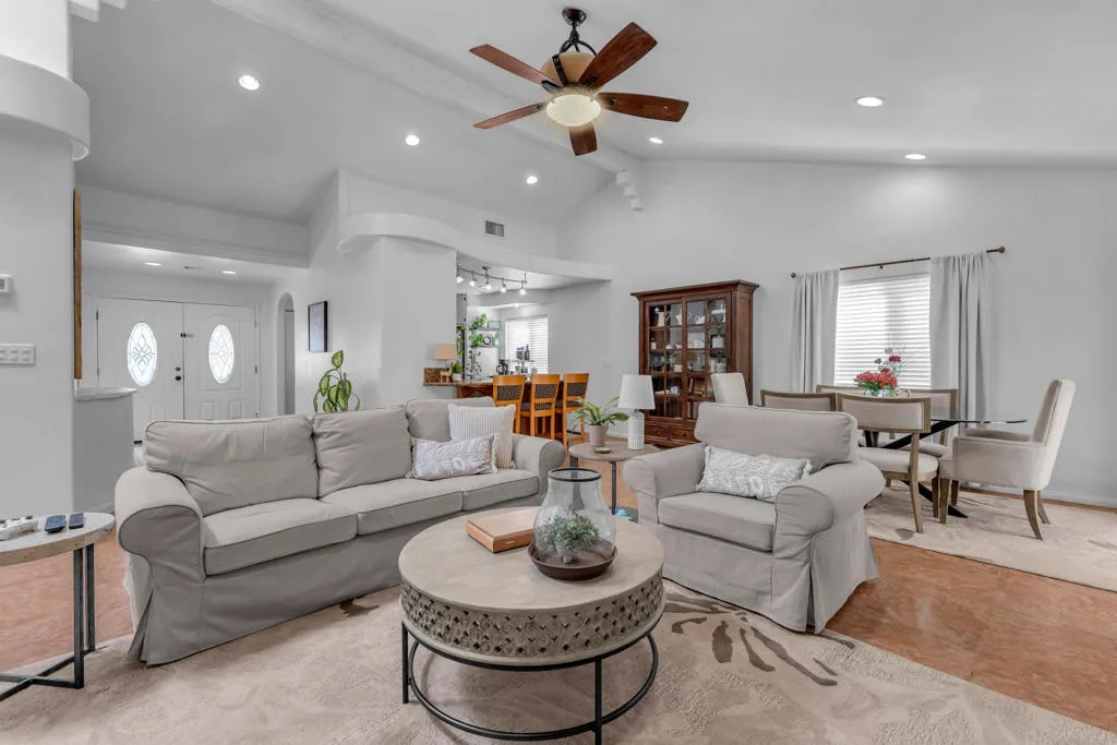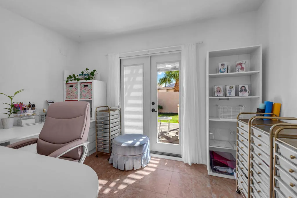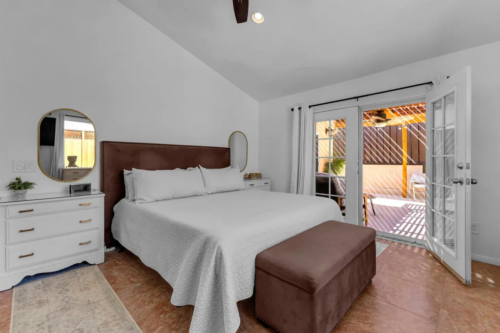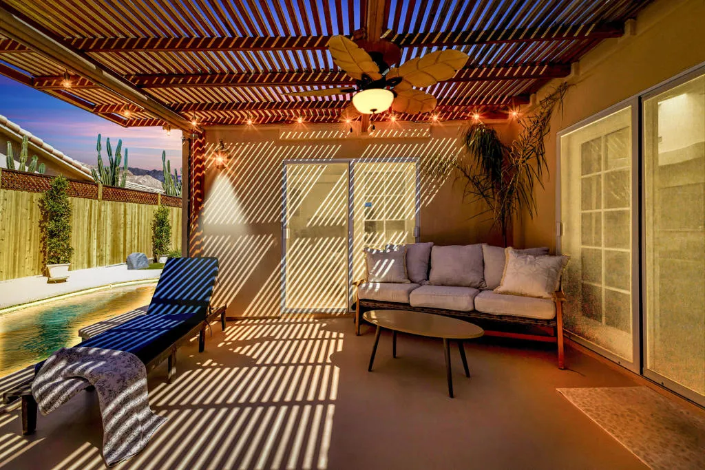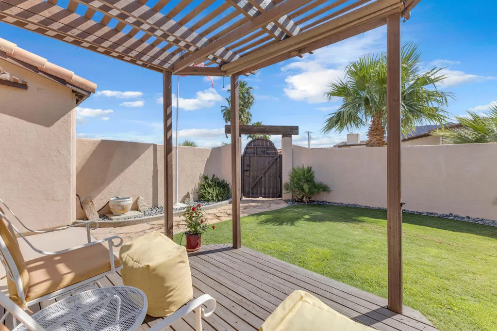 Welcome to upper La Quinta Cove, where peaceful living, mountain views, and true desert lifestyle come together in one beautifully designed home.From the moment you arrive, the difference is clear. Double entry doors open into a defined foyer, creating a warm and inviting first impression rarely found at this price point. Inside, soaring ceilings and abundant natural light make the home feel expansive well beyond its approximately 1,800 square feet.Designed with both everyday living and entertaining in mind, the layout flows effortlessly from the kitchen to the dining area and out to the backyard patio and pool. Whether hosting friends or enjoying a quiet evening, the indoor outdoor connection feels seamless and natural.The primary suite offers a private retreat with French doors opening directly to the backyard, perfect for morning coffee or evening relaxation. Guest accommodations are thoughtfully designed with a Jack and Jill bathroom connecting two bedrooms, while an additional powder bath provides convenience and privacy for visitors.What truly sets this home apart is its dual outdoor living experience. The private backyard features a pool and covered patio ideal for entertaining, while the enclosed front courtyard offers a serene escape with fountain ambiance and stunning sunrise views over the Santa Rosa Mountains. Both spaces create a rare sense of privacy and tranquility.Located in the highly desirable upper Cove, this home enjoys exceptional quiet and a true neighborhood feel, where neighbors connect and look out for one another. Just moments away, you will find scenic hiking and biking trails, along with the charm, dining, and shopping of Old Town La Quinta.This is more than a home. It is a lifestyle defined by light, privacy, flow, and connection to everything that makes La Quinta special.