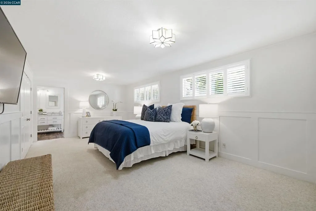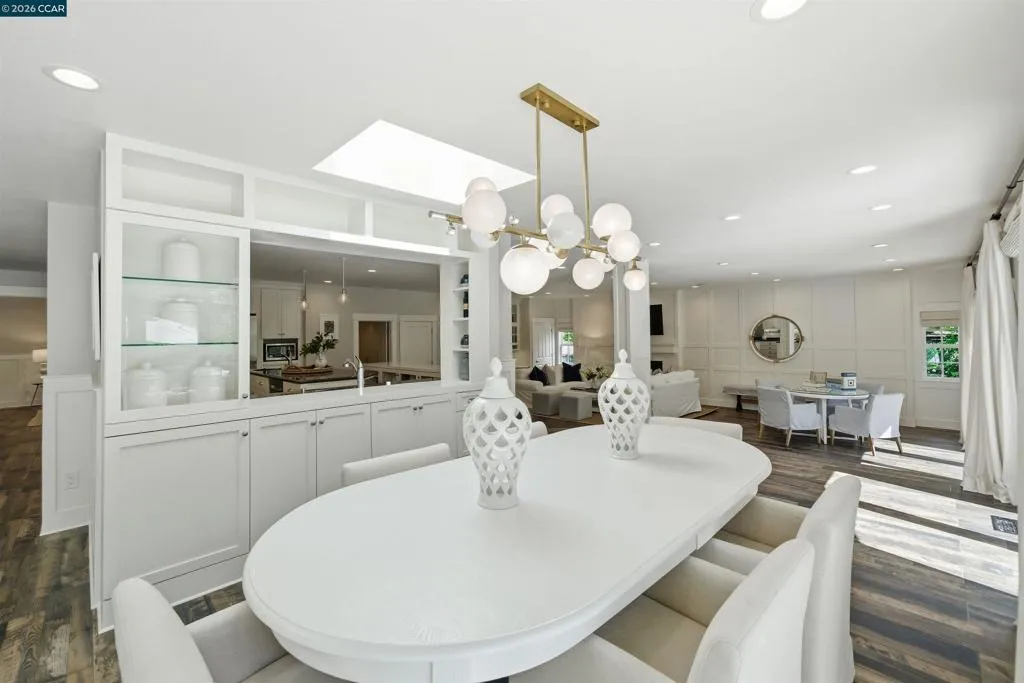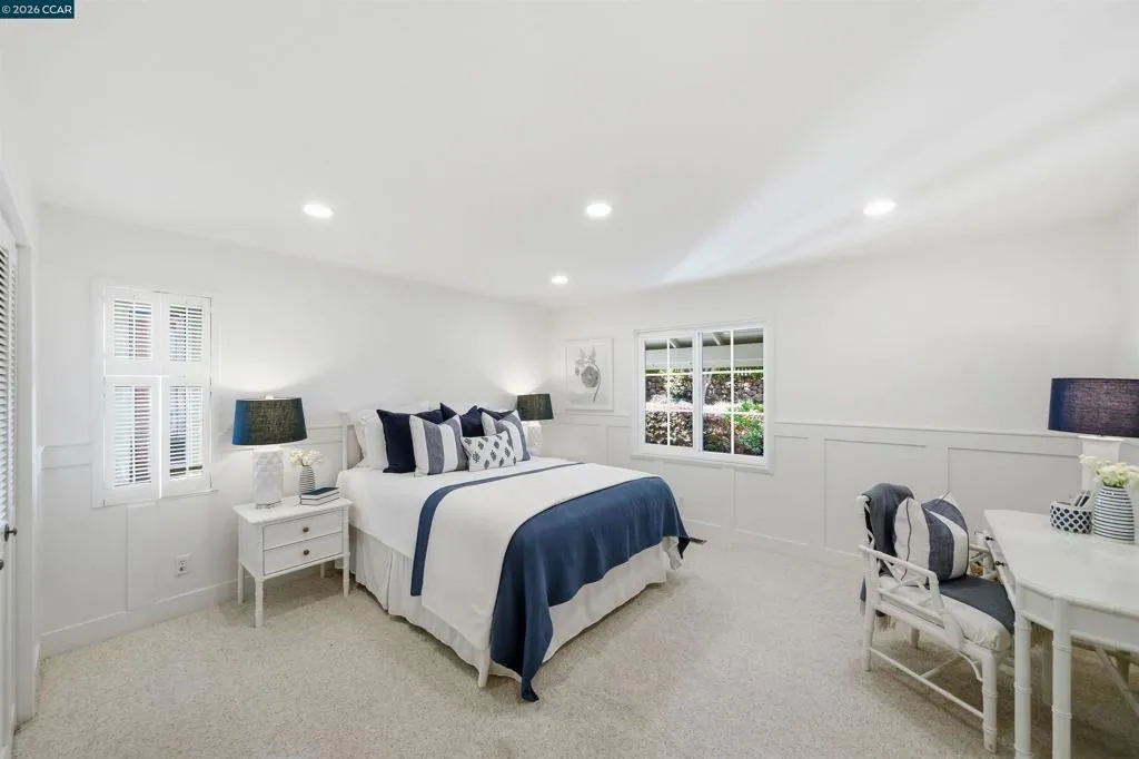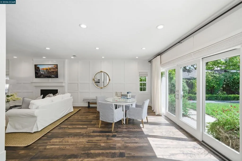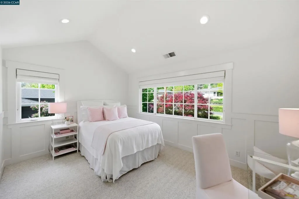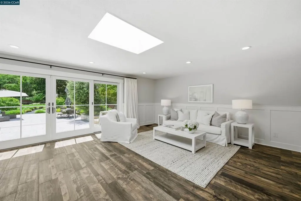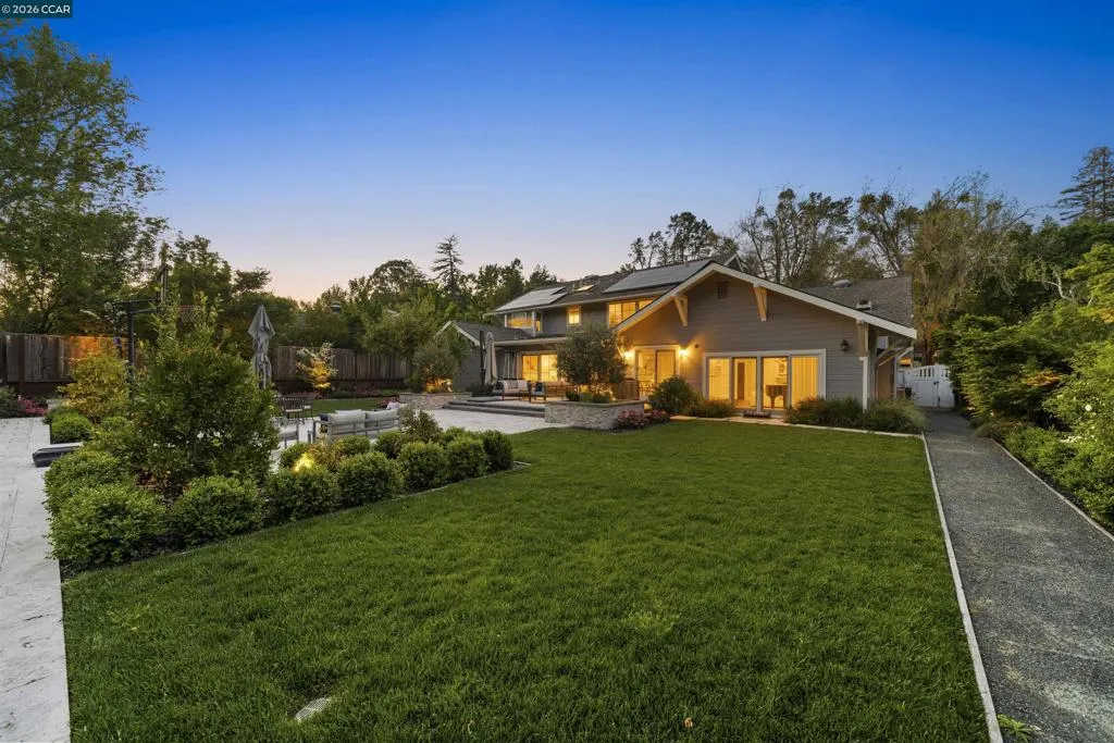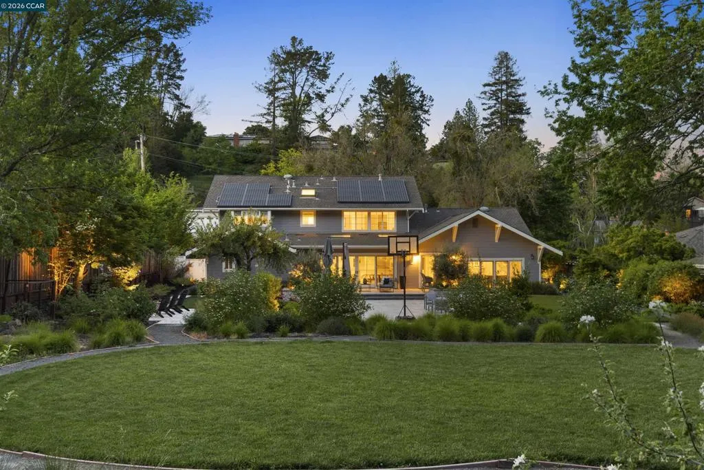 Rarely does a home like this come to market in Orinda. From the moment you arrive, the elegant traditional covered entry, impeccably landscaped front garden, and mature Japanese maples set the tone for everything that follows. Step inside to a home reimagined from top to bottom with a sophisticated designer palette; crisp white wainscoting, warm wide-plank floors, skylights, and walls of glass that dissolve the line between indoors and out. The main level is an entertainer's dream: a cozy parlor with fireplace and built-in cabinetry, an expansive open-plan family room with skylight and sliding doors to the patio, a beautifully appointed dining room, and a gourmet kitchen with stainless appliances, island, bar seating, and butler's pantry. Two generous bedrooms on this level; one a serene en-suite complete the main floor. Upstairs, the primary suite impresses with soaring vaulted ceilings, lush garden views, walk-in closet, and attached office. Two additional bedrooms with vaulted ceilings and a well-appointed hall bath complete the upper level. Outside is where 246 Overhill truly sets itself apart. The .69-acre flat lot, vanishingly rare in Orinda, has been transformed into a resort-caliber retreat: a grand stone patio with built-in fire pit, a separate dining terrace, sweeping oval lawn, raised garden beds, abundant fruit trees, mature ornamental plantings, and a basketball hoop. Solar panels add modern efficiency, and the property is pre-plumbed for a pool, cabana, or ADU. Moments to Glorietta Elementary, Meadow Swim & Tennis Club, the Lafayette Rim Trail, and both Orinda and Lafayette town centers. Welcome home!