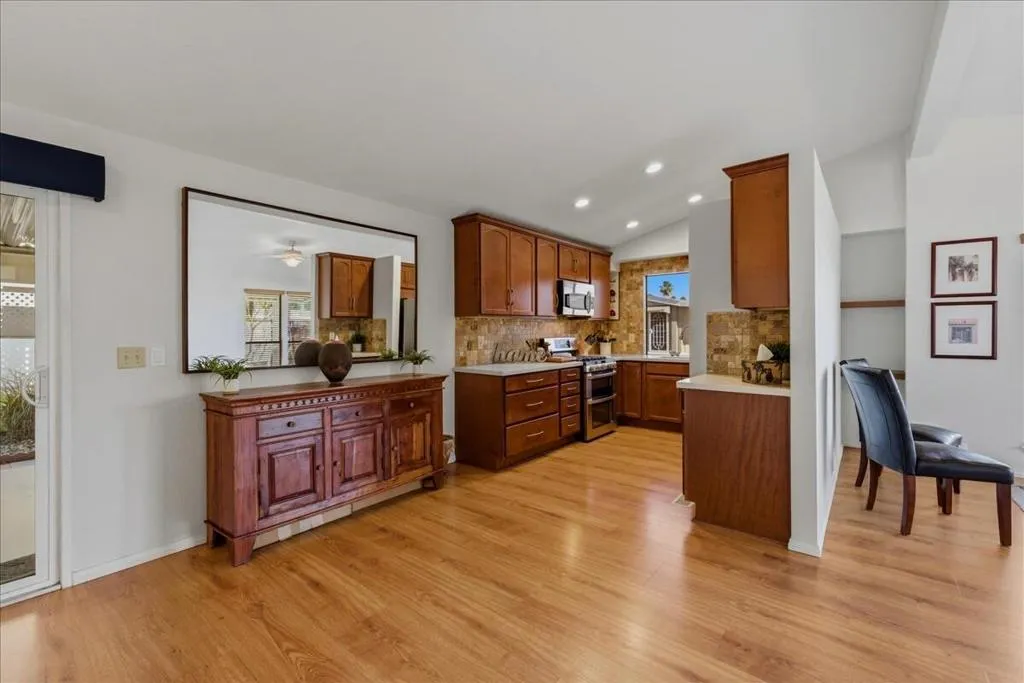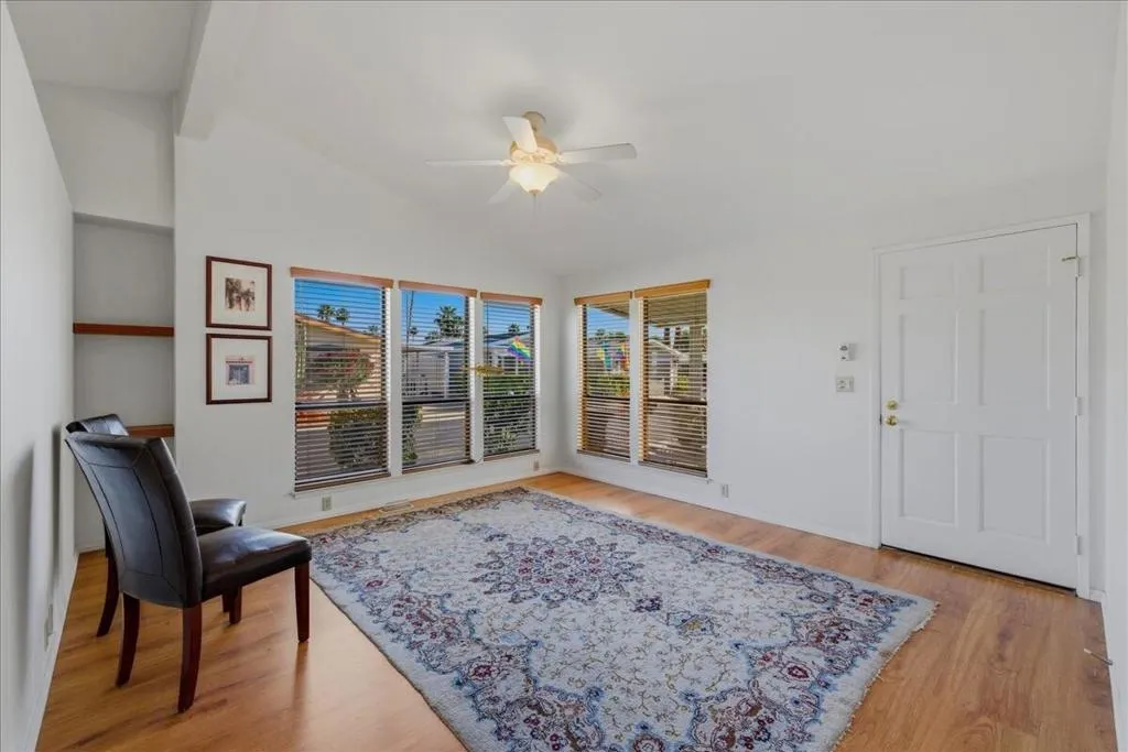 Entertainer's Delight, This updated 2 BD/2BA Mobile Home has been remodeled with New Kitchen featuring stainless Refrigerator, Stove and Microwave. As you enter, the Living Room is light and leads to Dining area and Kitchen. The Primary Bedroom has a nice triangle clerestory window and slider to the rear yard. The Primary Bath has been updated with tiled walk in shower, dual vanities and extra storage space. The Guest Bedroom has a hall bath with step-in shower and a separate slider to the side patio area. There is Vinyl Flooring throughout the entire home. There is also a full-sized Washer and Dryer in Hall Closet. The Rear Patio has had an extension covering added and has a completely bricked back yard which will hold 20-30 guests comfortably. Wonderful Southern and Western Mountain Views. There is a covered carport for two cars and a large storage closet at the end of the carport. This unit is located in a quiet section of the community. The Canyon is centrally located in the Valley and has easy Freeway access on Gene Autry Trail or Date Palm Dr. We are near shopping, entertainment, PS Int'l Airport and 10-12 Min. to Downtown Palm Springs! The Canyon features only Full-Time Residence or Second Homes. We have wonderful park like greenbelt grounds with Tennis & Pickleball. Our clubhouse boasts an upgraded Banquet Hall, Gym, Card Room and Library along with 4 Enclosed Heated and Cooled Shuffleboard Lanes, Two pools and a Spa. You will need to qualify as a resident with 3 times space rent $950 = $2850 along with a FICO score of 750. One domestic animal of 20 lbs unless it is a Service Dog. The Canyon is the place to be for 55+ Adult Lifestyle Living. Make an OFFER Today!!