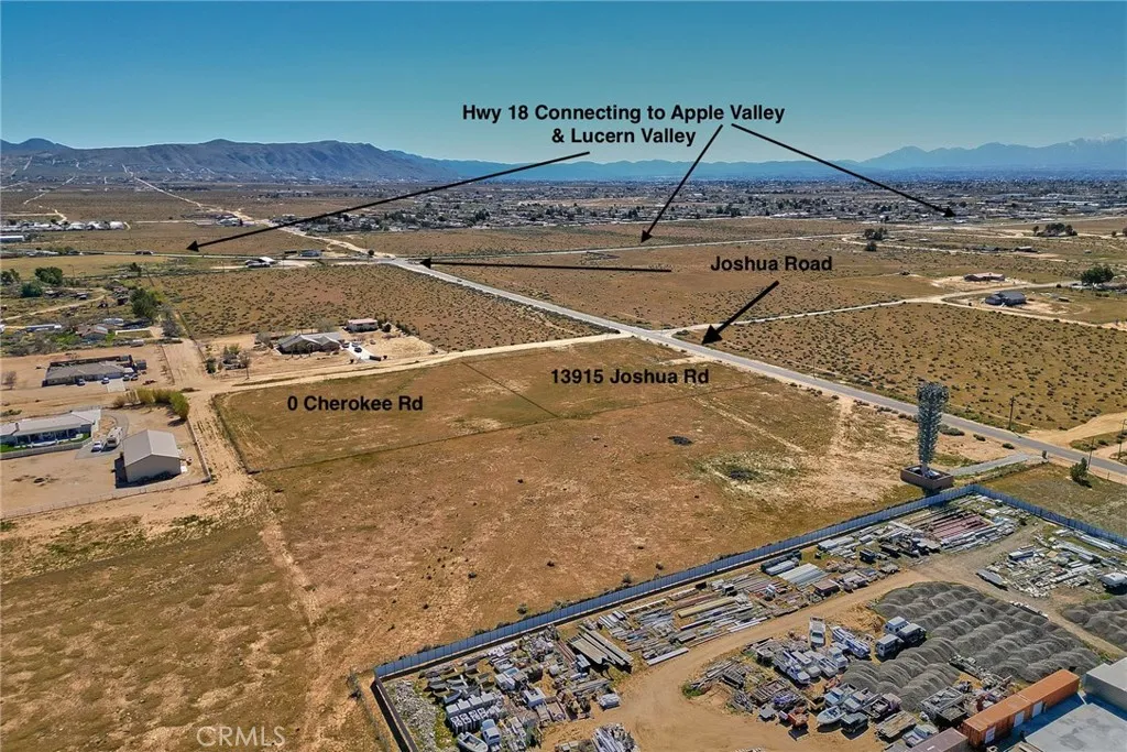 Great opportunity to start or expand your business endeavors on a lot so close to main street (Joshua Rd) and 18 Hwy. This lot has been leveled and wire fenced with spaces left opened for future doors. The lot next to it (13915 Joshua Rd ) which is facing main street is also for sale. These lots have tons of potential for business development in an expanding area of Apple Valley. Their location is prime since they are at less than a mile from the 18 Hwy. According to the San Bernardino county and Land Use Services, there are many business options for this zoning - Supplement included, check them out! Around these lots, there are many existing homes and many more being built, so these homes will need goods and services... perfect business opportunity!