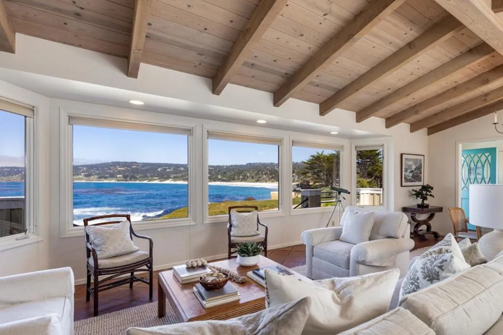 Truly one of the best views on Scenic Road. This elevated frontline Carmel Point location has sweeping, unobstructed views of Carmel Beach, the ocean, Pebble Beach Golf Links and Stillwater Cove. This home has been held in the same family for generations and offers a rare combination of view, character, and potential. Once inside, enjoy single-level comfort, vaulted wood-beam ceilings, and a light-filled living room with windows that frame the coastline. The updated kitchen with skylights and custom cabinetry. The oversized lot features a spacious protected backyard with a sunny patio and gazebo surrounded by mature landscaping and the sound of crashing waves and ocean views. Includes a 1-car garage with additional storage space and a well-appointed utility room with sink and second washer and dryerperfect for beach livingor a little extra water potential for future development. Just steps to Carmels white sand beach and a short stroll to downtown Carmel, this is a once-in-a-lifetime opportunity to enjoy the ultimate beach house in one of Carmel's most iconic locations.