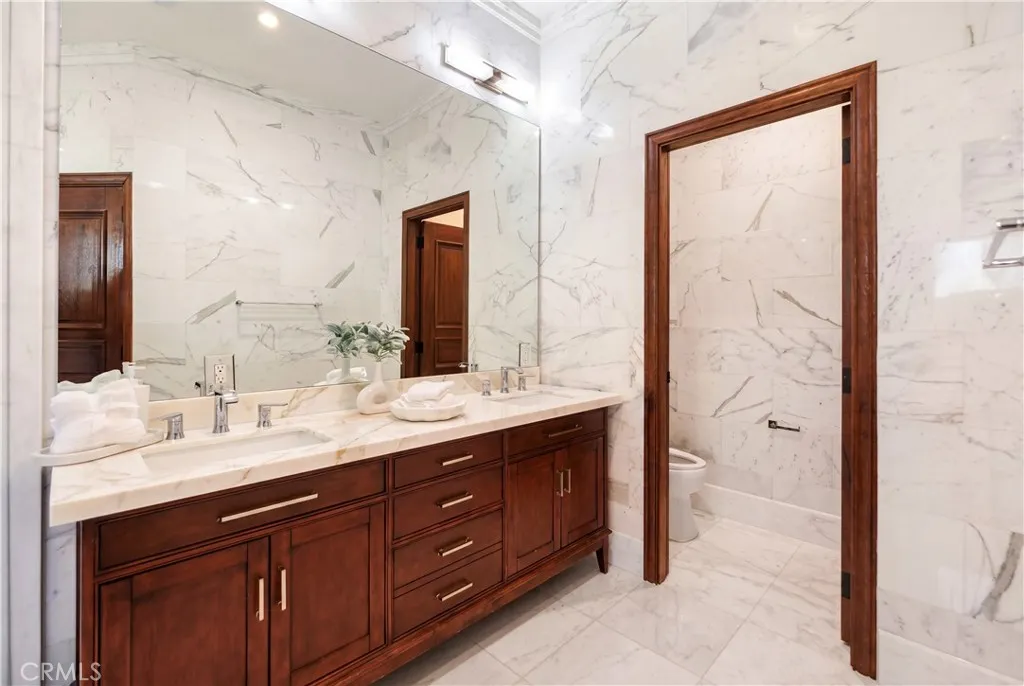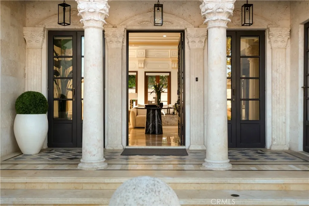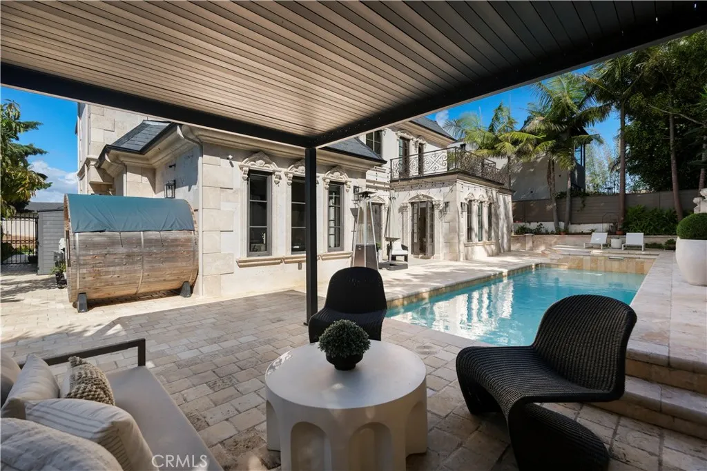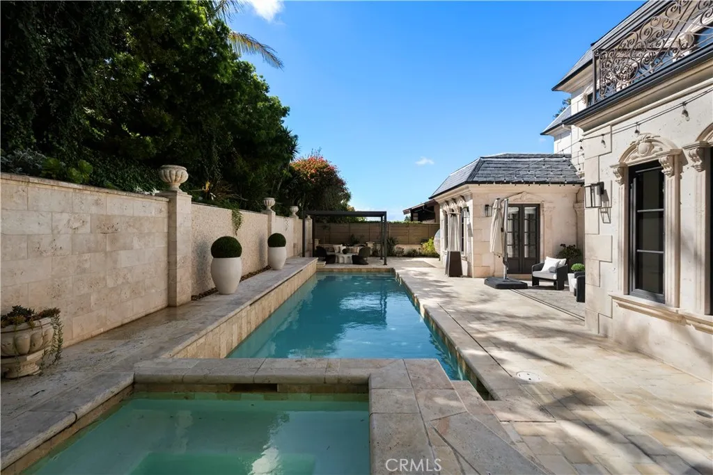 Defined by quality craftsmanship and intentional design, 2027 Santiago is a bespoke Transitional French Tudor completed in 2018. Thoughtfully designed with a refined blend of classic architecture and modern livability, the residence offers five bedrooms, including a main level junior suite, and five baths, complemented by wine cellar, upper level loft, and media room. Bright, open interiors are finished with honed Crema Marfil stone flooring, designer stone surfaces in the kitchen and baths, and imported custom doors and windows from England. The exterior showcases timeless craftsmanship, wrapped in Navona stone with Calacatta marble detailing. Designed for seamless indoor outdoor living, the private backyard evokes a resort style setting with expansive stone hardscaping, a pool and spa, and a striking symmetrical water feature that creates a true sense of privacy and distinction. Ideally located near award winning schools, premier shopping, dining, and close proximity to the coast, this home offers a balanced blend of sophistication and everyday comfort.