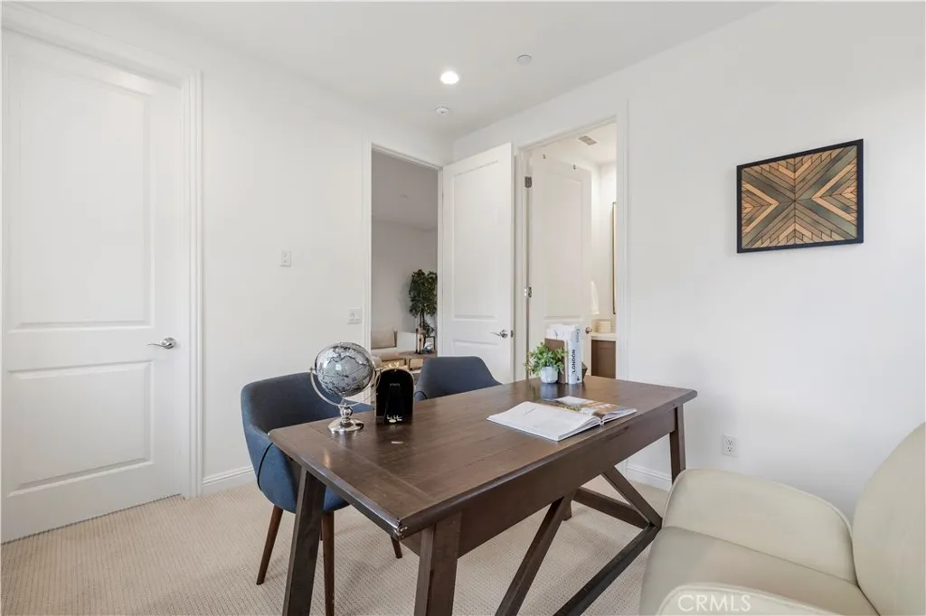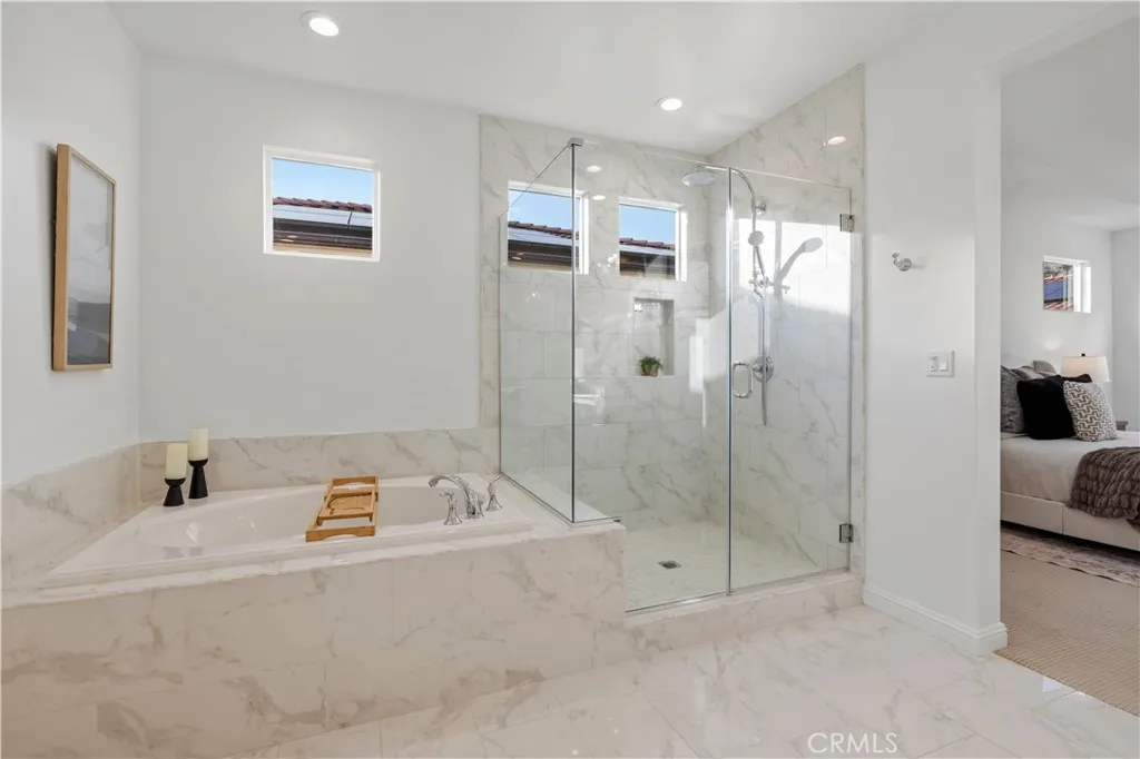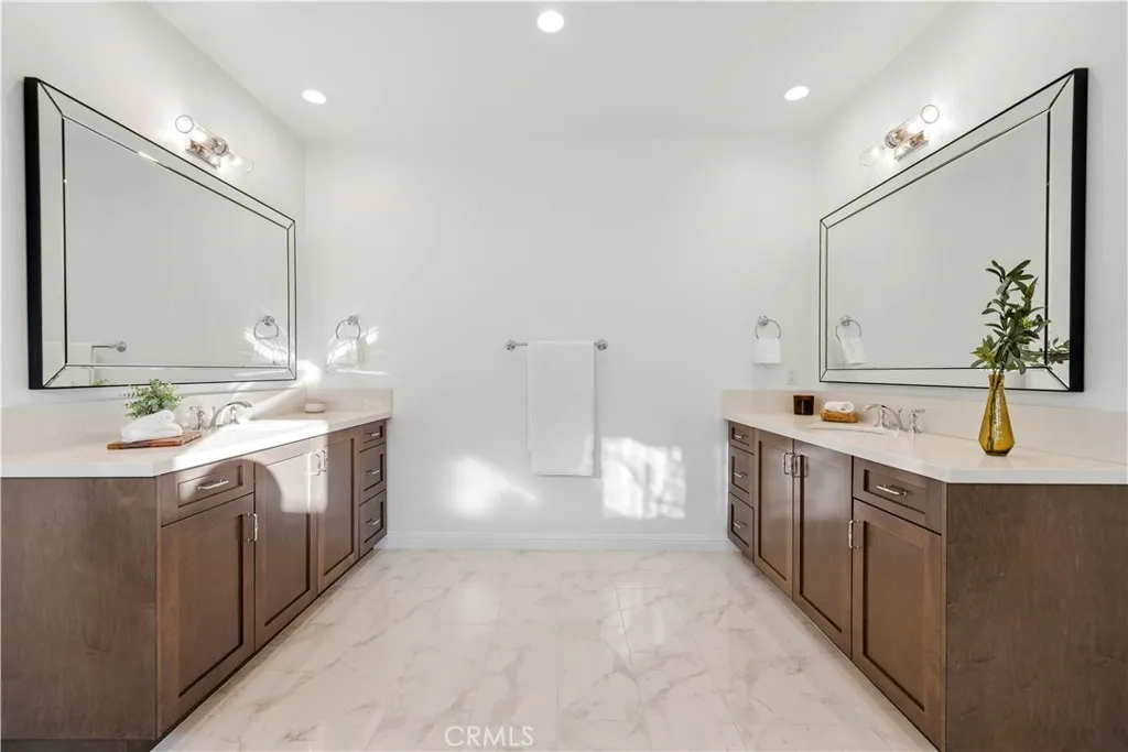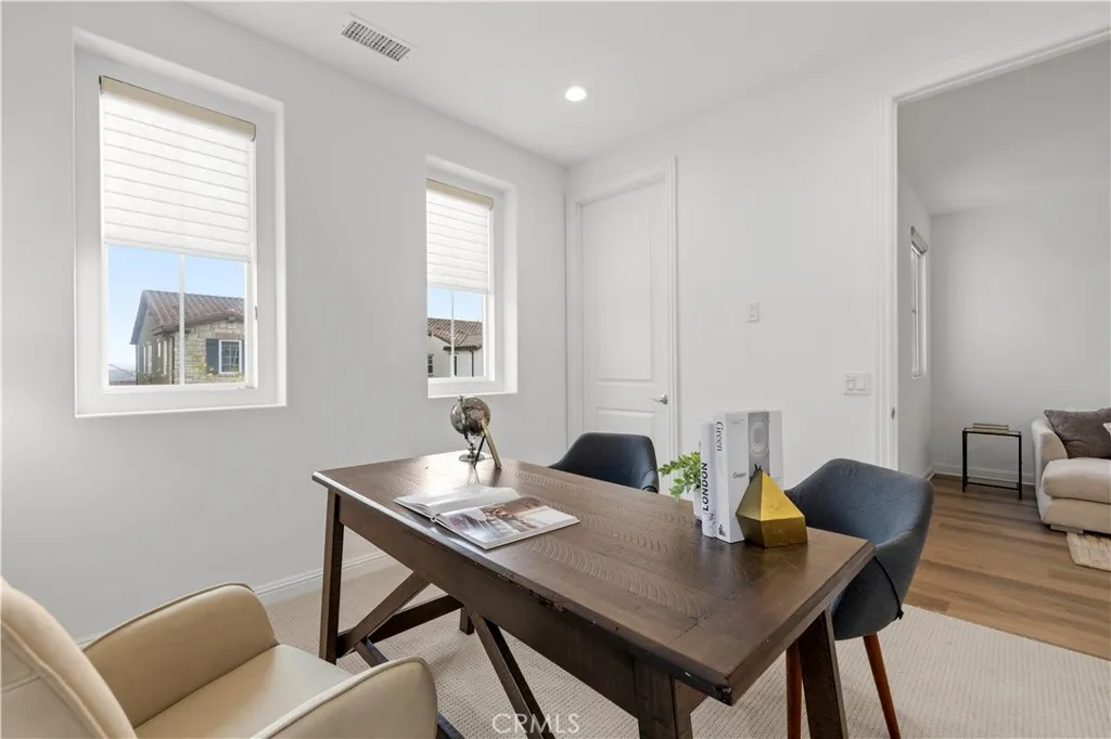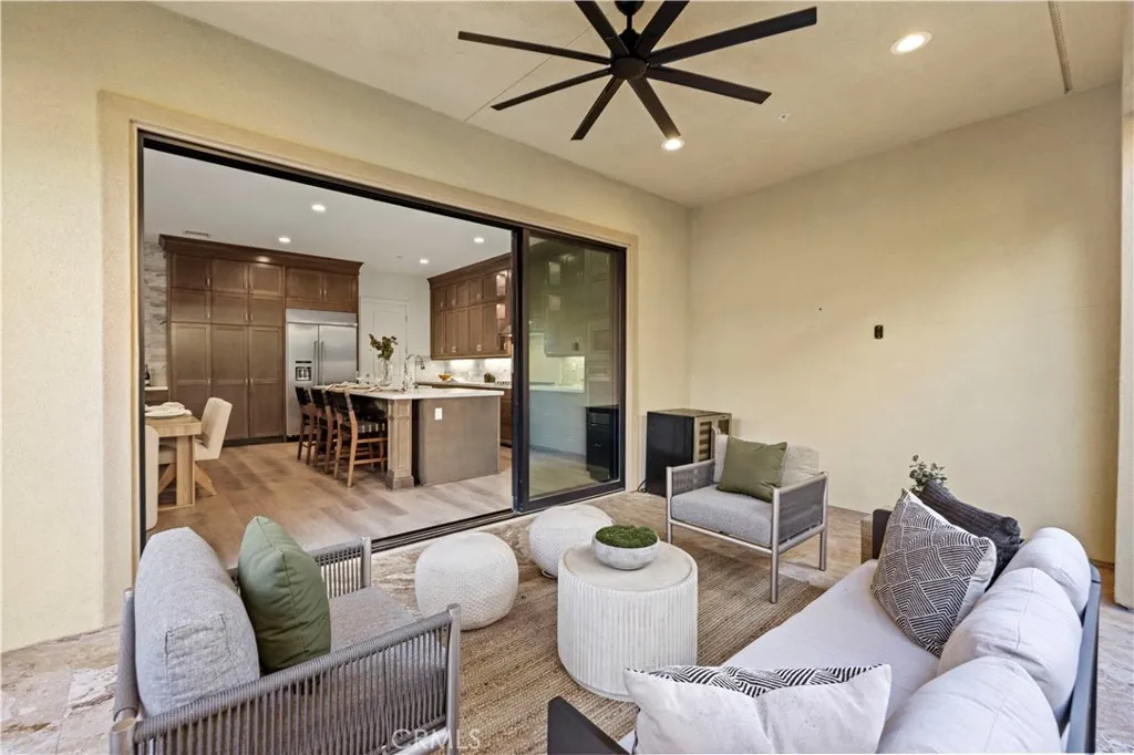 Nestled within the prestigious, guard-gated Canyons community in the highly sought-after Porter Ranch area, this stunning residence offers 5 bedrooms, 4 bathrooms, and a spacious loft designed for modern living. Upon entry, you’re welcomed by an elegant foyer highlighted by luxurious laminate flooring and an abundance of natural light that enhances the home’s open, airy layout. The main level features an expansive great room with built-in speakers—perfect for entertaining and large family gatherings—alongside a dining area and a convenient downstairs bedroom ideal for guests or a home office. The chef’s gourmet kitchen is a true showstopper, showcasing premium finishes throughout. Enjoy quartz countertops, ceiling-height custom cabinetry, stainless steel appliances with a built-in refrigerator, a dedicated coffee bar station, and an oversized center island perfect for casual dining and entertaining. Upstairs includes four bedrooms, highlighted by a stunning primary suite with coffered ceilings, walk-in closet, and spa-like bath with dual sinks, soaking tub, and separate shower. Additional features include leased solar, upstairs laundry, and a 2-car garage. The low-maintenance backyard offers artificial turf and a covered California patio—perfect for entertaining. Canyon Oaks amenities include guard-gated entry, pool, spa, cabanas, BBQ areas, and clubhouse. Close to Porter Ranch Community School and The Vineyards with shopping, dining, and entertainment.