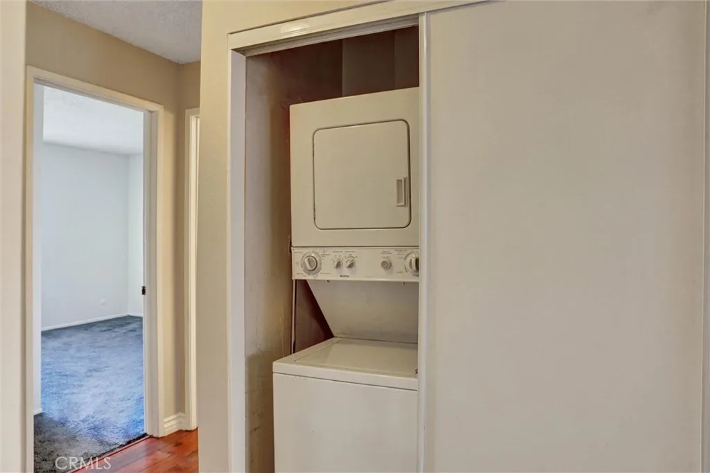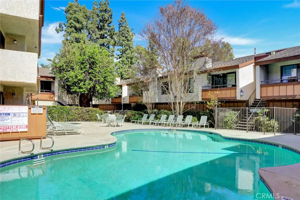 This refreshed 2-bedroom, 2-bathroom condo offers a rare layout with no neighbors above or below. It is situated in an Exclusive, free-standing building of only six units; the entry is up one level due to covered tandem parking underneath. The building is located on the west side of the complex and does not face Sherman Way. Your front door opens to an airy space with a vaulted ceiling and features a one-of-a-kind Bonus Loft tucked over the kitchen—perfect for a gaming space, a cozy slumber party zone, or a quiet retreat. Step out onto your private patio to enjoy serene views of a landscaped courtyard and the gentle sound of two trickling fountains. The interior has been mostly repainted and is a clean slate, ready for you to enhance the existing features or bring your own design vision to life—a task made easier by new vinyl plank flooring in both bathrooms. For your convenience, there is an in-unit stacked washer/dryer and a dedicated water heater. Parking space #200 provides covered tandem parking for two cars and is easily accessible to the driveway gate and the unit. Outside your door, the gated complex offers a sparkling pool and jacuzzi, a spacious sun deck for lounging, and outdoor gas grills. Location is everything: you are minutes from the lush greenery of Lake Balboa Park, the vibrant dining and shopping hubs along Sepulveda and Van Nuys Boulevards, and the 405 freeway for an effortless commute. This gem is ready for its next chapter and so are you. For an idea of what this property could look like fully remodeled, look at listing number 26724329, unit #47, in the same complex. The listing price already factors in the cost of remodeling, should you choose to do so.