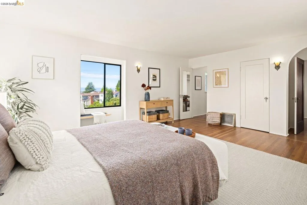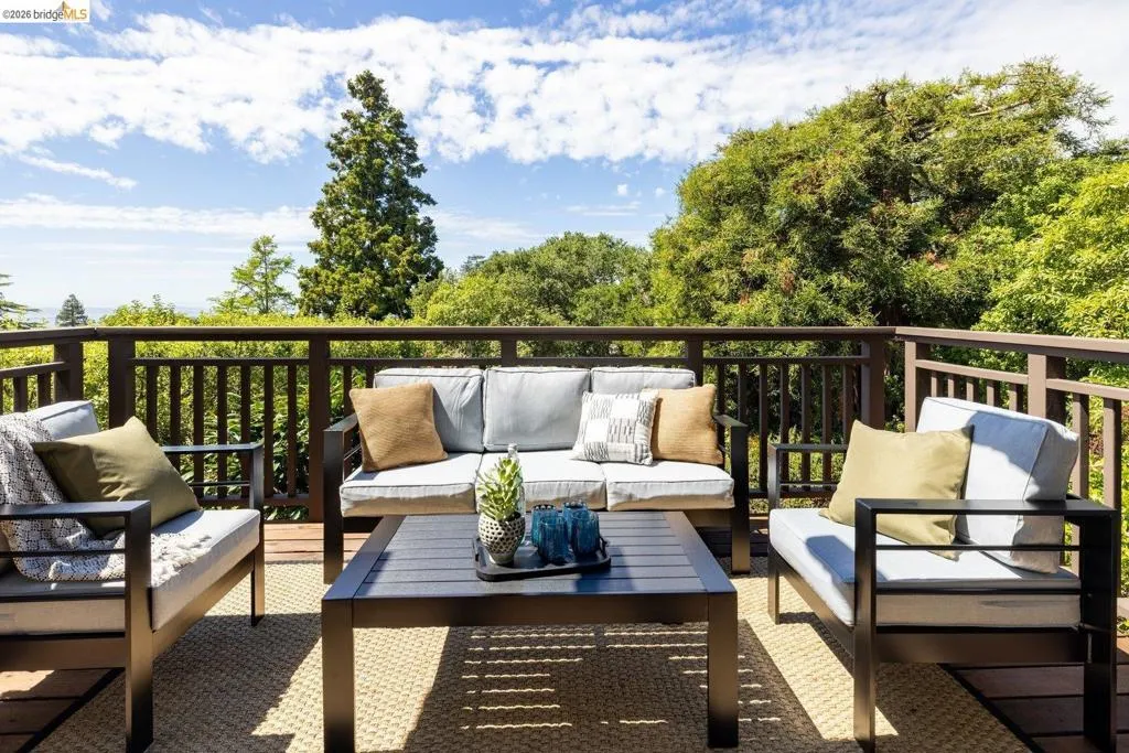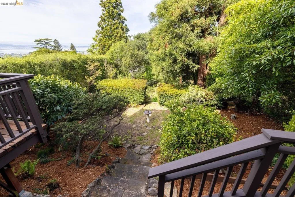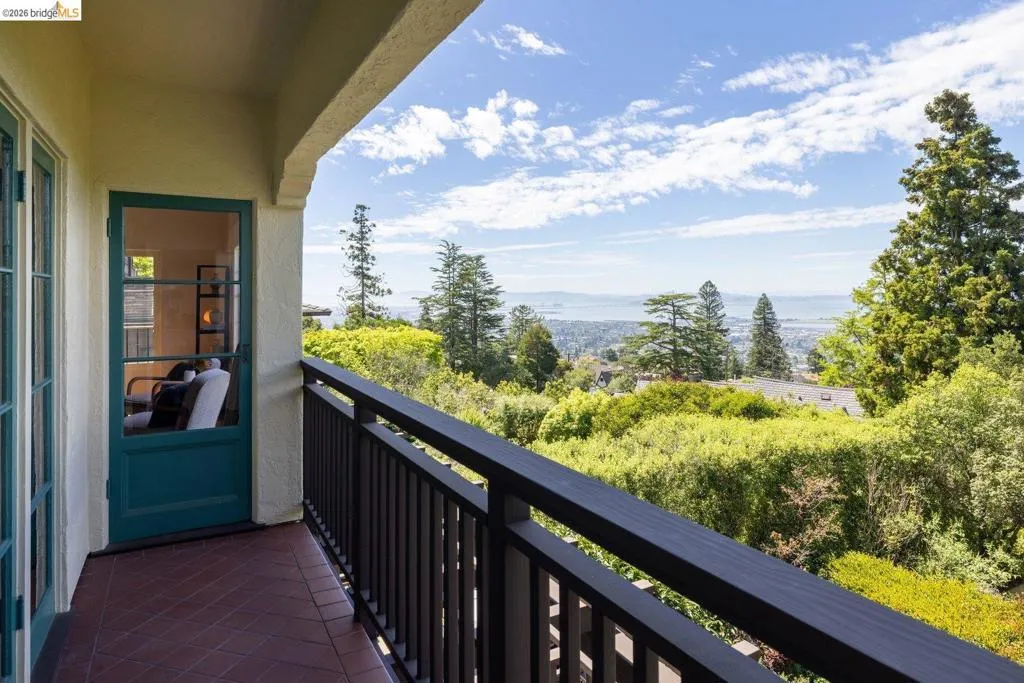 Built in 1932 and set along a coveted stretch of Euclid Avenue in the North Berkeley Hills, this distinctive Spanish Mediterranean residence offers scale, character, and sweeping Bay views. Spanning over 3,000 square feet, the home is defined by its volume and architectural detail, including exposed wood beam ceilings, rich hardwood floors, and a dramatic living room anchored by a fireplace and grand, period windows that frame the surrounding greenery and outlooks toward the Bay. The formal dining room opens to a balcony, creating an easy flow for entertaining and everyday living. The kitchen blends classic design with thoughtful updates and connects to a bright breakfast nook featuring beautiful built-in original cabinetry. Three bedrooms and three baths are well distributed, while additional living spaces with tiled floors and built-in details provide flexibility for a variety of uses. Both upstairs bedrooms feature their own enclosed balcony with beautiful outlooks, offering a quiet retreat above the surrounding landscape. Set on a 7,700 square foot lot, the grounds feature mature landscaping and multiple outdoor areas, including a well-appointed lower level deck overlooking the rear garden, ideal for dining, relaxing, or entertaining. The setting offers a strong sense of privacy while capturing the natural beauty of the hillside. Views: Downtown