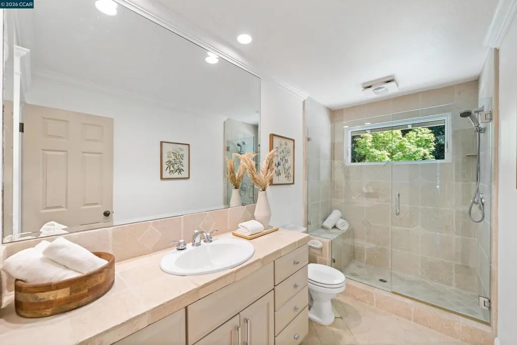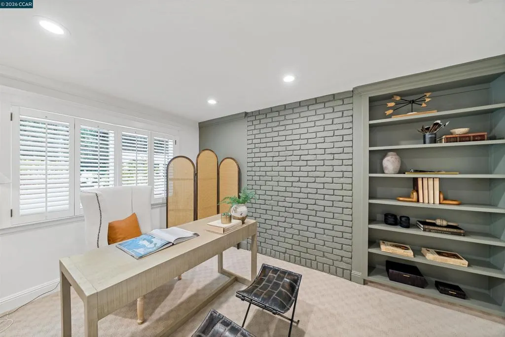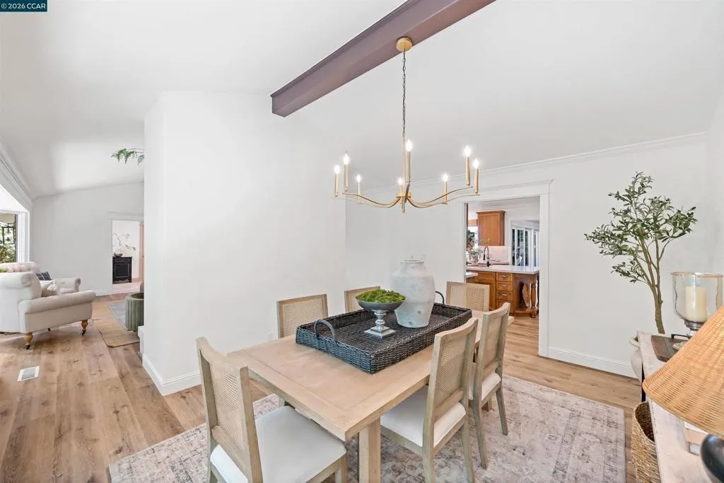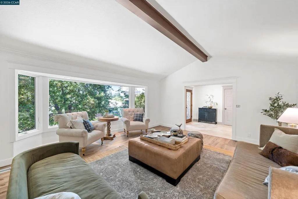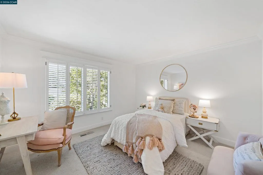 Nestled near the prestigious Round Hill Country Club, this stunning Traditional 4 bedroom plus office, 4 bathroom, 3,734 square foot home blends timeless elegance with everyday comfort. Thoughtfully designed with an expansive, functional floor plan, it offers beautiful yard views from nearly every room—ideal for entertaining and daily living. A charming garden entry welcomes you into light-filled interiors with soaring ceilings, custom lighting, and expansive windows. The dramatic living room features a striking fireplace, while the adjacent dining room offers vaulted ceilings and seamless access to the kitchen. The remodeled kitchen impresses with a large island, bar peninsula, office nook, and ample cabinetry. A sunny breakfast nook with brick fireplace, built-in bar, and French doors opens to the backyard and adjoining family room. The spacious primary suite is a private retreat with yard access, vaulted ceilings, and a walk-in closet. The luxurious bath includes dual vanities, an oversized shower, soaking tub, and skylight. The beautifully landscaped yard offers a deck with BBQ island, pool, spa, fire pit, and serene privacy. Ideally located near Roundhill Country Club, Downtown Alamo, Top Alamo schools, hiking/biking trails, parks and easy commuter access.