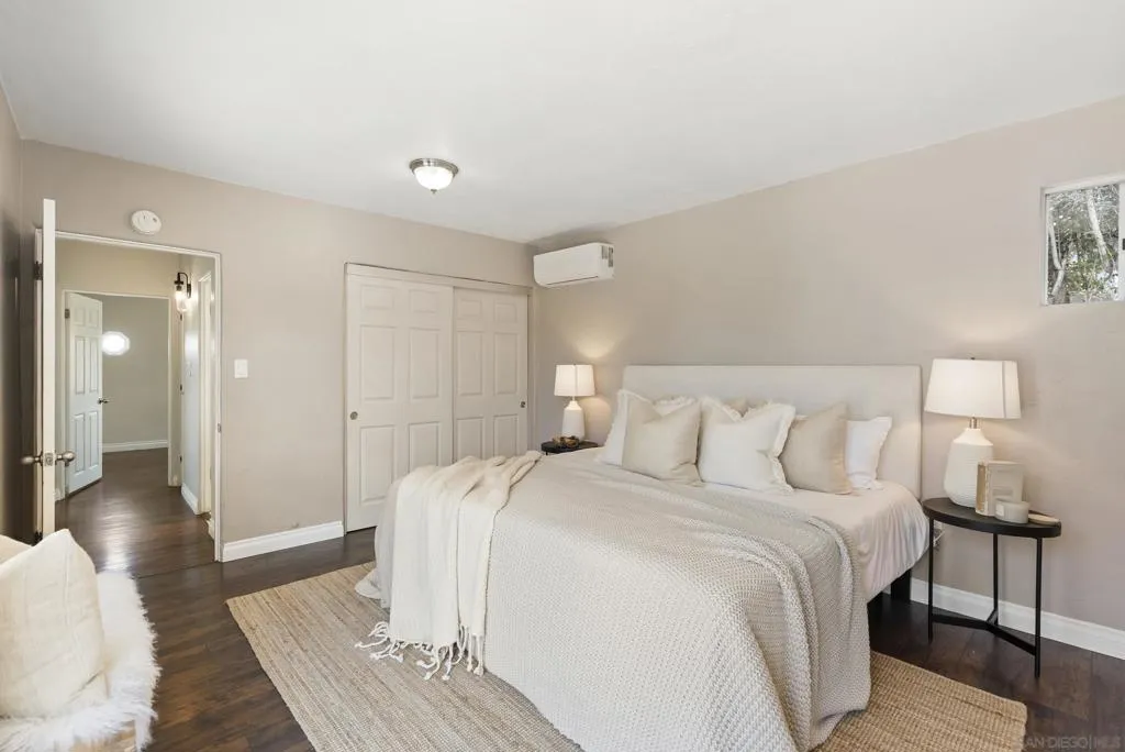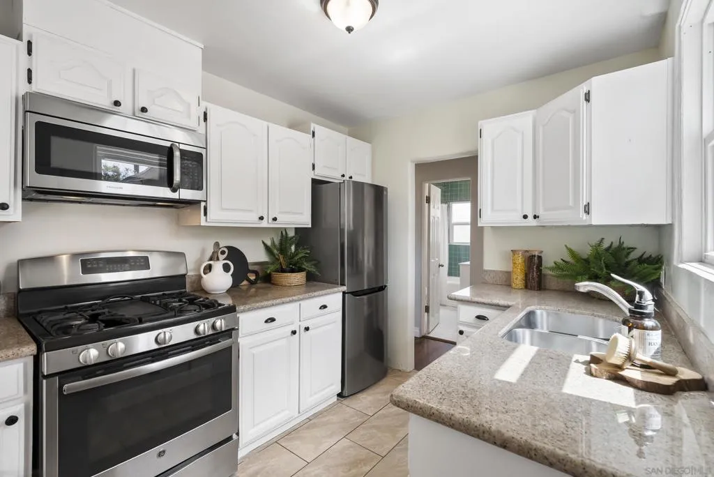 Exceptional opportunity for first-time buyers, VA buyers, or investors to secure a single-family home with panoramic ocean, bay, Coronado, and Downtown San Diego views from the front of the home. Turnkey for immediate comfort with clear long-term upside, this property also features a detached 2-car garage offering prime ADU conversion potential for additional income or multi-generational living. Set on a generous 6,600 sq ft lot, the home pairs efficient interior living with (see suppl) expansive outdoor possibilities. Refinished hardwood floors, tray ceiling details, and abundant natural light create a warm and inviting atmosphere throughout. The kitchen features granite countertops, stainless steel appliances, and flows into the dining area with vintage double doors leading to the patio. The spacious primary suite includes a fully remodeled bathroom full of character, while the well-sized secondary bedroom and updated hall bath provide modern functionality. Comfort is enhanced with individual mini-split HVAC systems in each room, dual-pane windows, a newer 100 AMP electrical panel, tankless water heater, and a newer roof (approx. 2 years old). The backyard offers ample space to entertain, relax, or expand, complete with a 10x6 Tuff Shed for added storage. Ideally located near 32nd Street Naval Base and Coronado, this home delivers both lifestyle and value in a central San Diego location.