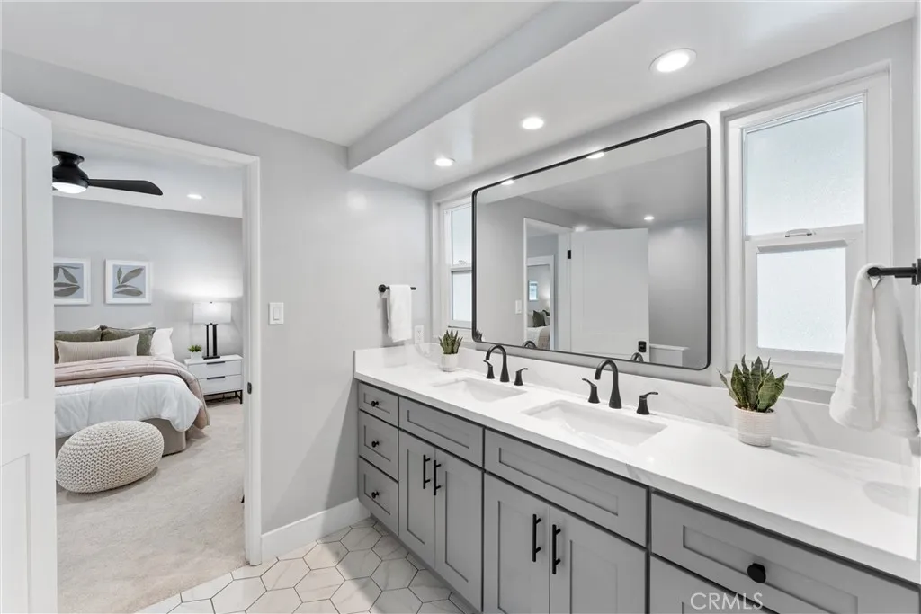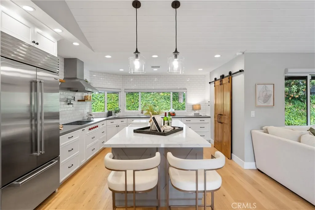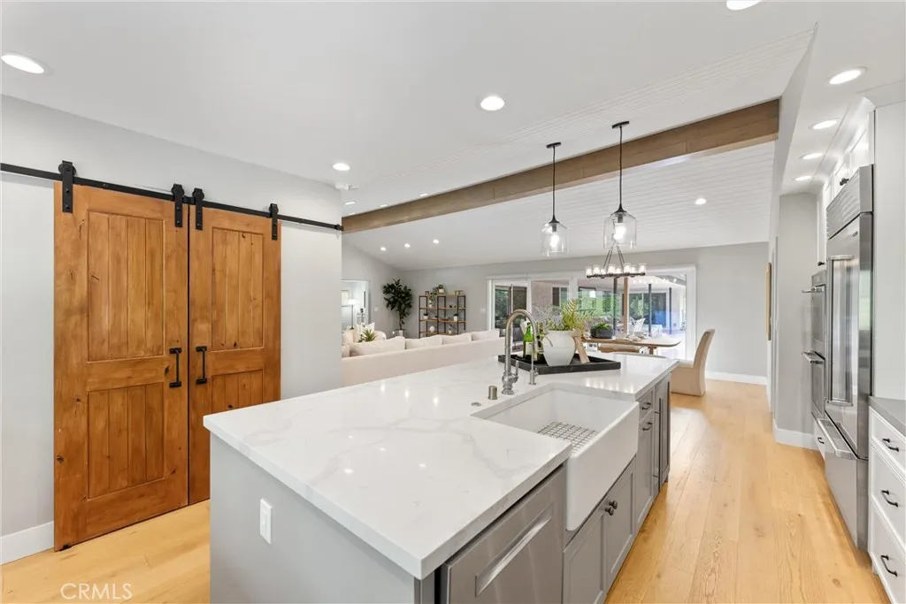 Experience this beautifully reimagined single-level home in the highly desirable community of Sunny Hills Estates, set on a sprawling lot of over half an acre. Showcasing a newly remodeled interior, this home offers 4 bedrooms, 3.5 bathrooms, and a rare RV garage with epoxy flooring—elevating everyday living into a true lifestyle experience. Upon entry, you’re welcomed by a formal foyer that leads to a spacious living room with a fireplace and picturesque views of the expansive side yard. Designed for both entertaining and daily living, the family room—also featuring a fireplace with stunning tilework—flows seamlessly into the kitchen and dining area, creating an inviting space to gather with family and friends. The chef’s kitchen is a true centerpiece, complete with an oversized quartz island, Sub-Zero refrigerator, KitchenAid double oven, Wolf and Viking range, and Bosch dishwasher. Convenience is key with a nearby dedicated laundry room featuring custom built-ins and a large sink, along with an adjacent powder bath. Down the hallway, custom built-in desks with butcher block countertops provide a functional workspace, leading to two guest bedrooms connected by a beautifully remodeled Jack-and-Jill bathroom with dual sinks, designer hardware, and elegant tilework. The primary suite is privately situated with easy access to the backyard and features a newly remodeled bathroom and a walk-in closet thoughtfully redesigned by California Closets. A fourth guest bedroom completes the interior, offering a flexible layout ideal for multigenerational living. Step outside to your own private oasis, where a large patio framed by the home creates the perfect setting for al fresco dining and entertaining. Enjoy a wraparound putting green, a greenhouse with a drip irrigation system, and a generously sized, newly resurfaced pool that is fenced for added safety. Enhancing both comfort and value, the home also includes new dual-pane windows and sliders, a new gas line for the pool, roof replacement, custom Hunter Douglas window treatments, and fresh paint throughout. Ideally located near top-rated schools, Laguna Lake, West Coyote Hills, and equestrian centers, this home offers the refined lifestyle expected in one of Fullerton’s most established neighborhoods.