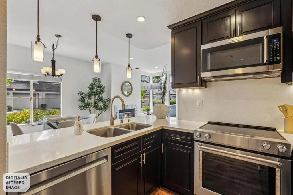 This is it, YOUR NEW HOME! Welcome to this beautiful downstairs end-unit executive condo in the highly desirable Parkview Green complex in North San Jose. This delightful property features a bright and open floor plan, brand new interior designer paint, gorgeous laminate wood flooring throughout, in-unit washer and dryer, brand new furnace, brand new water heater, attached garage with direct access, newly updated bathroom, and a beautifully updated kitchen with quartz countertop, modern cabinets, and stainless-steel KitchenAid appliances. Outside, revel in the elegant patio with high quality artificial grass, perfect for relaxation or entertaining guests. Within the condo complex, enjoy the use of a clubhouse, gym, pool, spa, and vibrant greenery all around. And of course, with its ideal North Valley location, you are only walking distance away from restaurants, shopping, Costco, H Mart, Ranch 99 Market, San Jose Municipal Golf Course, Townsend Park, tennis courts, and BART station. Whatever your lifestyle, Parkview Green's tree-lined location and distinctive community lets you create a life uniquely you, and this amazing executive condo will ensure that you live the good life for years to come. WELCOME TO YOUR NEW HOME!