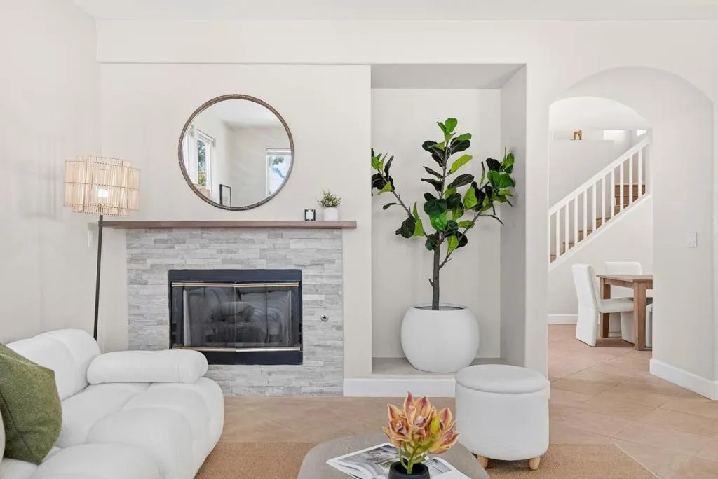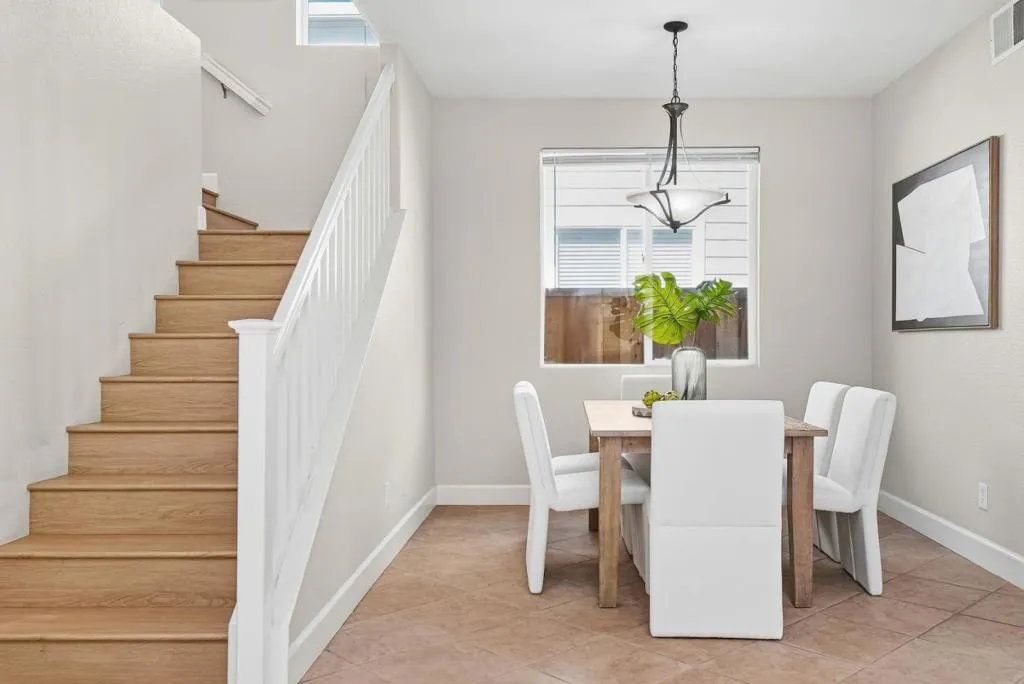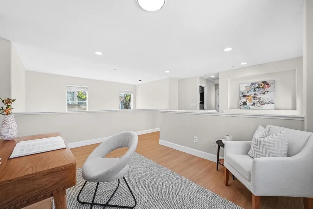 Step into this beautifully updated 4-bedroom, 2.5-bath home offering approximately 2,009 sq ft of bright, open living space. Soaring ceilings create an airy, spacious feel, while the expansive living and dining areas flow seamlessly into a cozy family room with a modern fireplace and abundant natural light.The beautifully remodeled kitchen features premium cabinetry, full backsplash, updated countertops, a center island, breakfast nook, and new stainless steel appliancesperfect for both daily living and entertaining. All bathrooms have been tastefully renovated with modern finishes. The spacious primary suite offers a spa-inspired bath with soaking tub, separate shower, walk-in closet, and custom closet systems. A versatile loft, currently staged as a home office, can easily be converted into a 4th bedroom, guest room, or flex space. Located in the exclusive gated community of Carter Station, this home enjoys a prime Newark location with easy access to shopping, dining, schools, major freeways, public transportation, and nearby tech campuses, including Meta Platforms just minutes away.