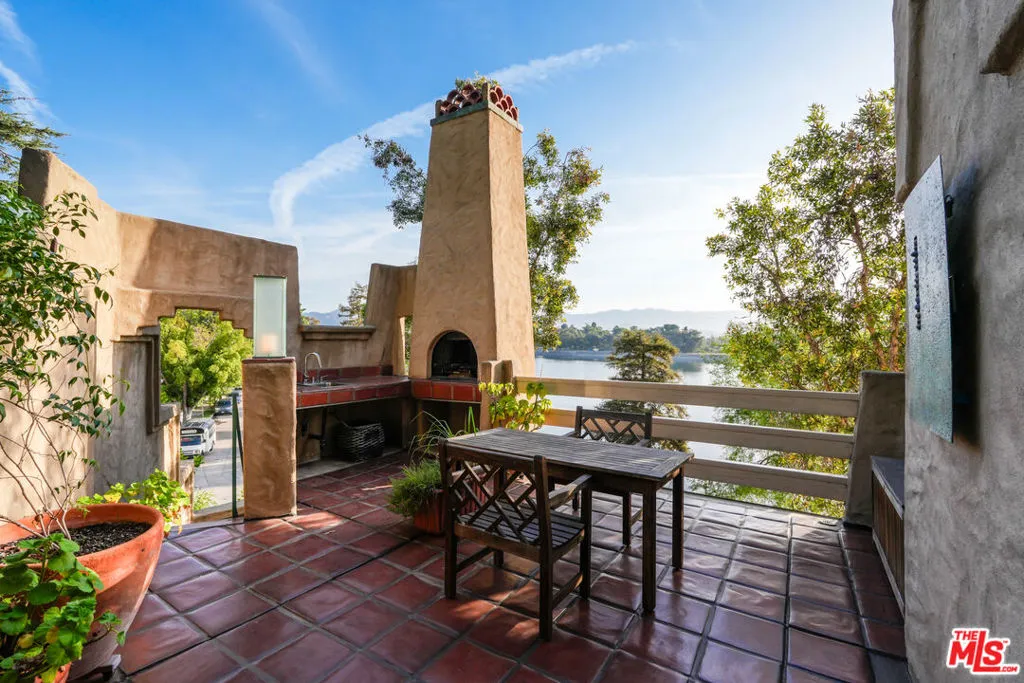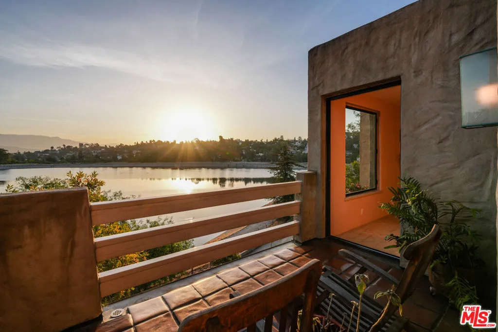 So, you say you want a view? FIRST TIME ON THE MARKET. Architectural designer's own home, welcome to SALISHAN, "a peaceful place for friends to meet". Inspired by native American designs, this Southwestern sanctuary is crafted of natural materials that seems to rise from the earth, tucked in greenery, enjoying these sweeping 180-degree views of Silver Lake and the charm of the surrounding hills. Another true example of Silver Lake's legacy of architectural excellence, here patios on every level invite sunrise coffee and twilight toasts, each one oriented toward the lake. Pocketing sliders and expansive windows open the home to the outdoors, allowing the views to take center stage. The main level is an entertainer's dream: open-concept living, dining, and kitchen with 10+ foot ceilings, a fireplace, and an east-facing wall of windows overlooking the reservoir. The large, open kitchen flows seamlessly to the dining patio. An additional bedroom on this level offers flexibility, with adjacent bath for guests. Upstairs, the oversized primary suite is a true showstopper, featuring a private patio with sweeping lake views, fireplace, a separate cedar closet and a generous walk-in closet with in-unit laundry. A second en suite bedroom brings its own quiet charm. On the entry level, an oversized two-car garage with addtional covered guest parking anchors the home alongside a fully self-contained guest suite with its own private entrance, patio, fireplace, kitchenette, and laundry. Ideal for long-time tenant or AirBnB income, au pair or "easy commute" home office. A dumbwaiter connects all levels for everyday convenience, along with a central vacuum system and ample basement storage. This is a rare opportunity to own a distinctive architectural home with exceptional views in the heart of Silver Lake, offering a front-row seat to the daily rhythm of the reservoir. The next chapter for this gem is yours to claim... for your friends to meet!