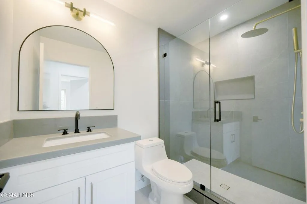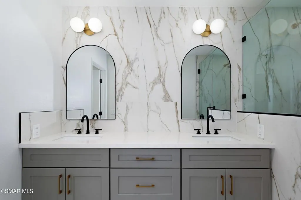 Extraordinary 4-bedroom, 3-bath home thoughtfully designed to meet today's modern lifestyle. In addition to the four bedrooms and three bathrooms, the home features a desirable downstairs bedroom, a dedicated laundry room with sink, and a spacious 3-car garage. From the moment you arrive, you'll appreciate the freshly painted exterior, updated dual-pane windows, and a durable 50-year composition shingle roof.Inside, soaring vaulted ceilings extend into the kitchen, while new luxury wide-plank vinyl flooring throughout creates a bright and inviting atmosphere. The exquisite chef's kitchen is brand new and showcases soft-close cabinetry, ample pantry space, a built-in trash bin, new appliances, and a built-in microwave. A skylight over the kitchen sink and recessed lighting enhance the space, which opens seamlessly to the family room featuring a gas fireplace and a newly built-in bar with sink, perfect for entertaining.Just off the living room is a downstairs bedroom, laundry room, and a full bathroom complete with all-new fixtures, a walk-in shower with new tile surround, frameless shower door and a new vanity. Upstairs, the primary suite offers a cozy sitting area with fireplace, built-in shelves, dual closets, ceiling fan, and a spa-like primary bath featuring an oversized walk-in shower with dual shower heads, and frameless shower door, an extended dual-sink vanity with generous counter space, and a new toilet in its own private water closet. Two additional bedrooms, each with ceiling fans, share a fully renovated Jack-and-Jill bathroom.Step outside to a fully fenced backyard with lush landscaping, grassy area, fruit trees, and drought-tolerant landscaping, ideal for relaxing or entertaining. Additional amenities include recessed lighting throughout, new plumbing fixtures and valves in the kitchen and bathrooms, a newer HVAC system with air conditioning, and two brand-new garage doors with new motors.Located near Woodside Park, top-rated schools, and shopping, this home offers the perfect blend of luxury, style, and convenience; a true gem combining refined design with modern comfort. Plus NO HOA.