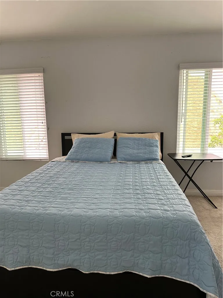 This is a 5 Bedrooms 3 Baths house at the North of the Freeway in the Box Springs Area of Moreno Valley. There are two bedrooms downstairs and three bedrooms upstairs for your convenience. Laundry room with washer and dryer in the garage. This house is close to the UCR and Moreno Valley Mall. The house is furnished with Queen beds, working desks and chairs in each room. TV in each room. Full equipped kitchen with stove, refrigerator, microwave. pots, pans and utensils. Large back yard with table, chairs and BBQ grill. Dining table for up to 10 guests. Living room with 3 reclinable sofas. 3 car garage. This house is clean and well maintained, it's perfect for big families. This is a house that has everything you may need for you and your family just to move in. Call for a private showing.