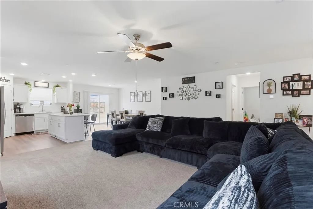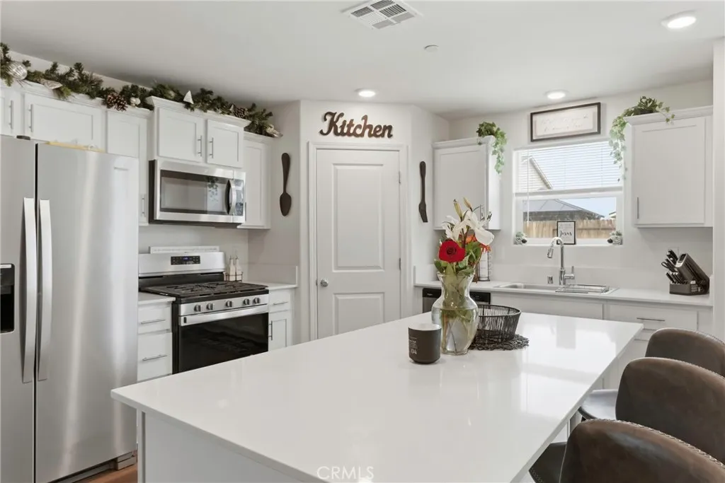 Welcome home to your single-story 4-bedroom, 3-bath home offering approximately 1,906 sq ft of thoughtfully designed living space. The open-concept layout features a spacious living room that flows seamlessly into the kitchen and dining area ideal for entertaining. The kitchen is appointed with shaker-style cabinetry with satin nickel hardware, quartz countertops, a center island with breakfast bar, walk-in pantry, and Whirlpool® stainless steel appliances including range, microwave, and dishwasher. The primary suite includes a dual-sink vanity and a generous walk-in closet. Conveniently located near schools, shopping, and dining, this move-in ready home presents an exceptional opportunity. Don't miss out on this one.