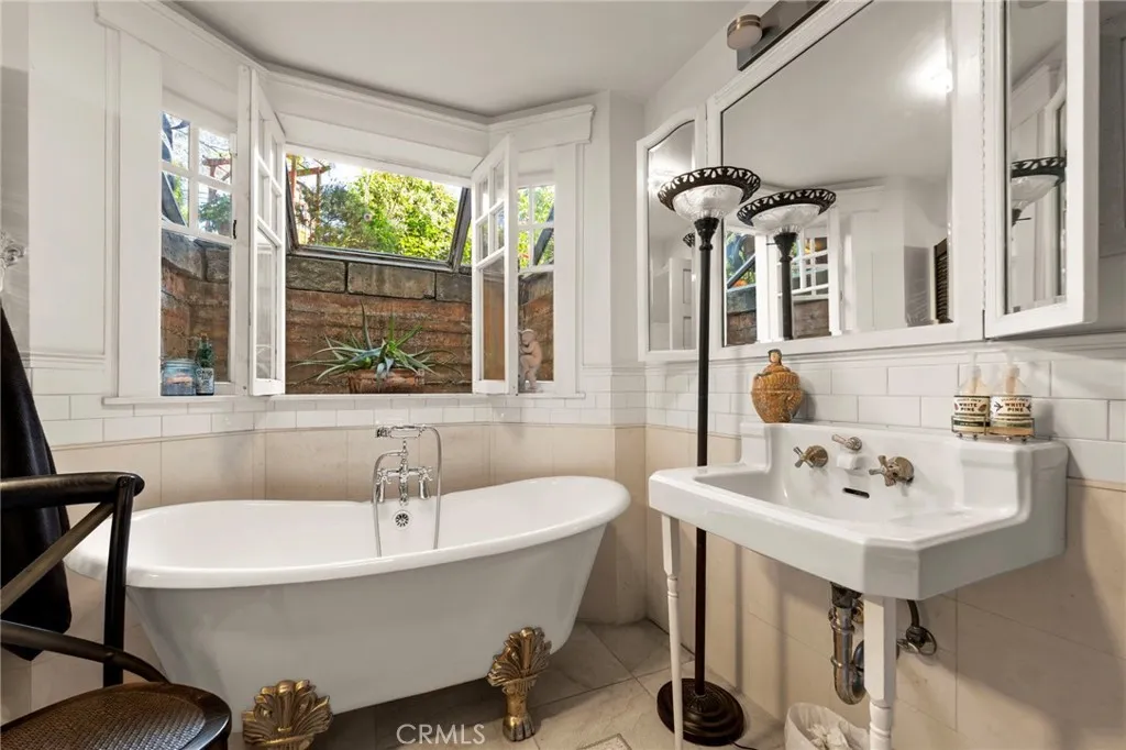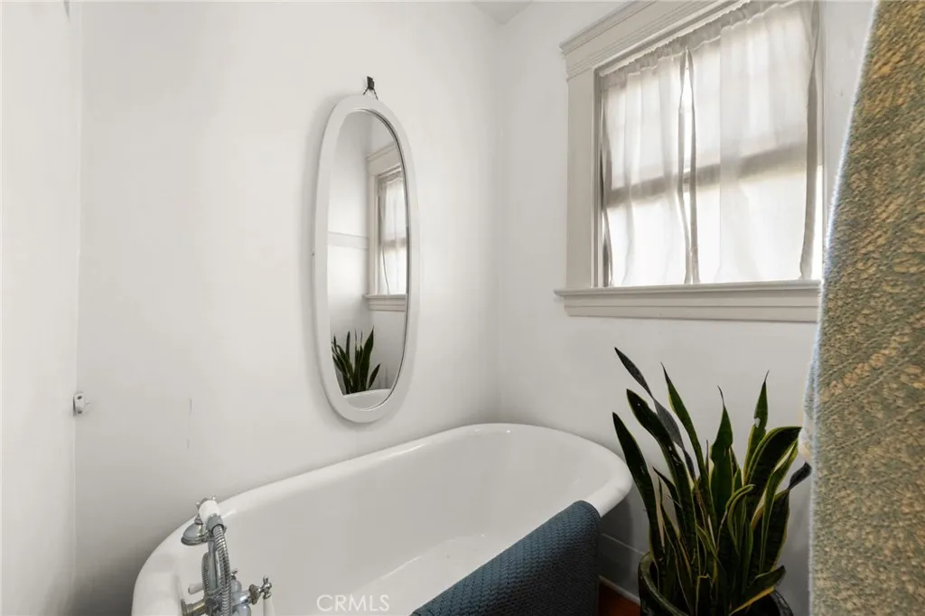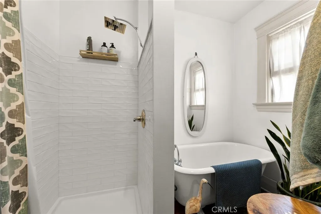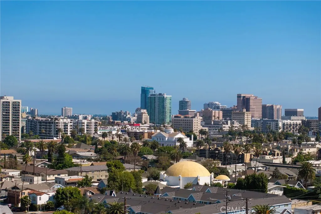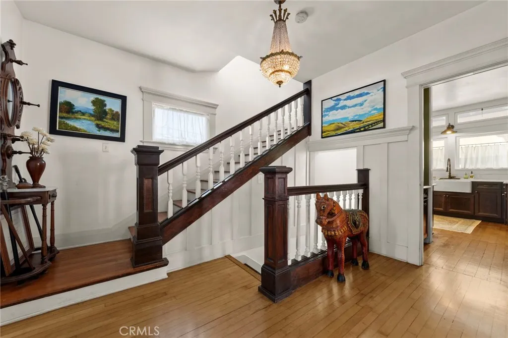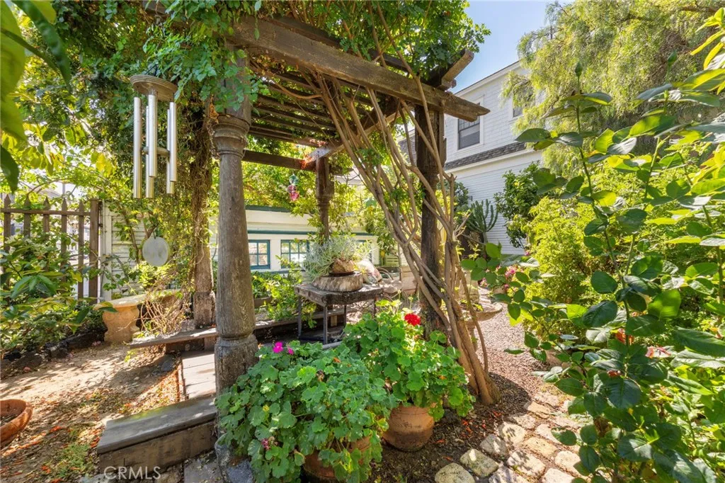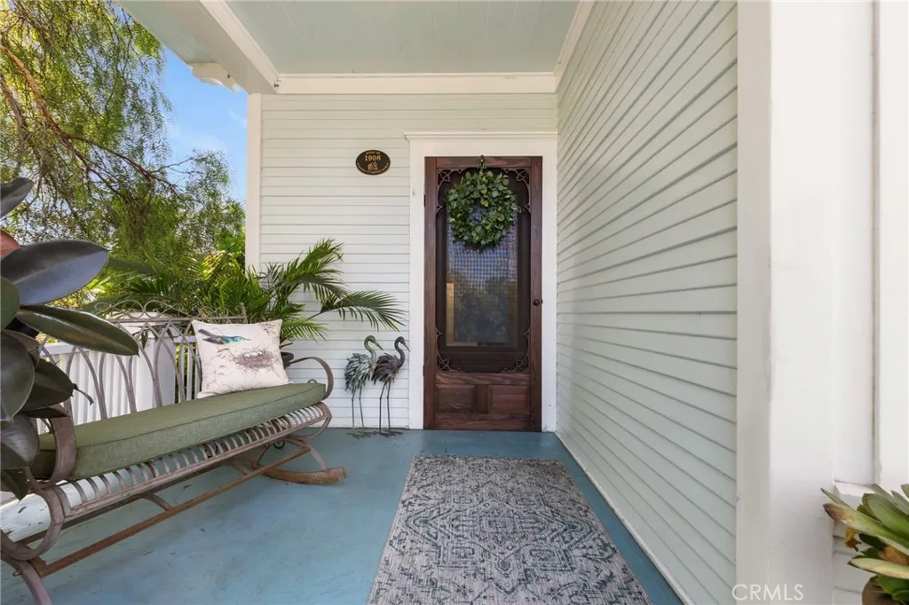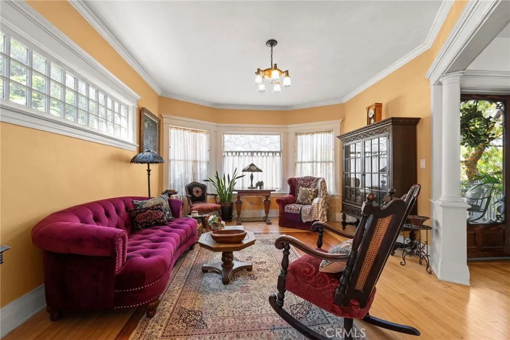 Nestled in the historic Willmore neighborhood, this stunning 1906 Victorian residence, named the Flossie Lewis House, blends classic architectural character with thoughtful updates throughout its approximately 2,500+ sq ft of living space. Inside you will find rich hardwood floors, elegant crown moldings, and a warm, inviting layout designed for both everyday living and entertaining. The main level features a formal living room and a refined dining room separated by a charming pocket door—preserving the home’s original character while offering flexible flow. The updated kitchen is both stylish and functional, complete with dark lower cabinetry, crisp white countertops, stainless steel appliances, a large farmhouse sink, and bright white upper cabinets. A dedicated laundry room provides stacked units and abundant storage. The downstairs den showcases dramatic dark wood beam ceilings, a full wet bar, and French doors that open to the backyard, creating the perfect indoor-outdoor entertaining space. The downstairs bedroom offers comfort and privacy with its own en suite bathroom featuring a classic clawfoot tub, pedestal sink, subway tile, and large sun-filled windows. The Upper level includes three additional bedrooms, including one with access to a private balcony—ideal for a spacious office or creative retreat. The guest bathroom echoes the home’s vintage charm with another clawfoot tub and a separate walk-in shower. Outside, the lushly landscaped backyard is a true sanctuary, filled with vibrant flowers, mature plants, and multiple areas to relax and unwind. A charming wooden archway frames a cozy seating area, while the large back porch easily accommodates a full outdoor dining setup—perfect for entertaining under the Southern California sun. Additional highlights include a driveway with two parking spaces and a location just moments from Drake park, The Benbridge house, dining, and all that Long Beach has to offer.