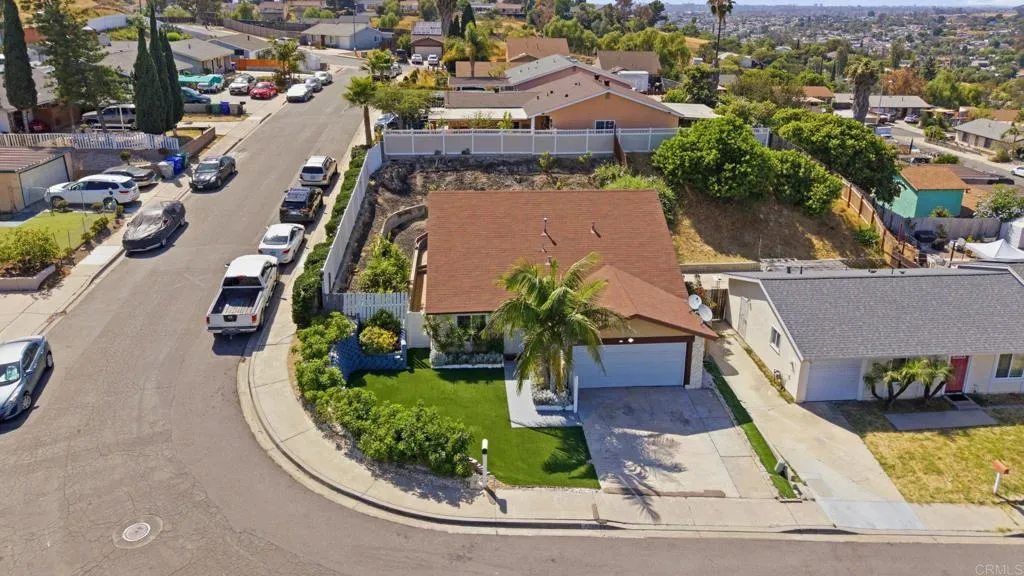 Welcome to this inviting home situated on a spacious corner lot. Offering 4 bedrooms and 2 full baths, Master bedroom with Jack-and-Jill bathroom on the first floor this property combines comfort, privacy, and functionality. Vaulted ceilings create an open and airy feel, laminate wood flooring adds warmth and style throughout. The low-maintenance yard features artificial turf, light landscaping, and mature fruit trees, creating a great space to relax or entertain. Spacious backyard with paver patio, a wonderful opportunity to enjoy space, privacy, and convenience in a desirable hillside setting.
