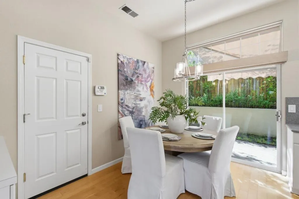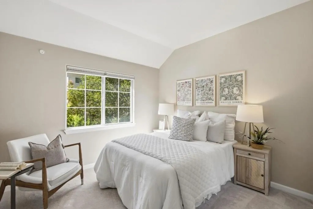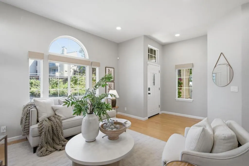 Nestled in the exclusive Bayview Community, rare for Belmont with its mostly flat terrain, this home offers a quiet setting ideal for everyday living and outdoor play. Enjoy the convenience of walking distance to schools, parks, and libraries, along with a newer, well-maintained home that is truly move-in ready. With a functional layout, three spacious bedrooms, two and half bathrooms, and a two-car garage, this home checks all the boxes. The entry welcomes you into a warm and inviting living room with soaring ceilings and abundant natural light. The bright kitchen offers ample counter and cabinet space and flows seamlessly into the spacious dining area. A convenient half bathroom completes the main level. Upstairs, the primary suite features a private balcony, walk-in closet, and a spacious en-suite bath. Two additional bedrooms share a full hallway bathroom. Step outside to a private patio and yard, perfect for grilling, dining, or simply relaxing. Enjoy access to top-rated schools, scenic parks, and hiking trails, all just moments from Carlmont Village shops and restaurants, with easy access to major commute routes.