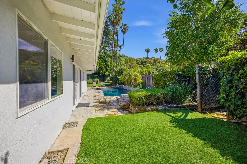 Located on a quiet cul-de-sac, this tastefully updated single-story home offers the perfect blend of comfort, style, and convenience. Designed with an open concept layout filled with natural light, the home features a formal entry, a spacious living room with a fireplace, and a family/dining area that flows seamlessly into a modern kitchen with Carrara marble countertops and stainless steel appliances. The primary suite features a walk-in closet and en-suite bath with a spa tub and separate shower. Step outside to a private backyard oasis with a sparkling pool with waterfall feature, a spa, two grassy areas, and a large covered patio, perfect for year-round entertaining. Recent upgrades include new hardwood floors, skylights, roof and insulation, sewer line, remodeled bathroom and replastered pool and spa. Convenient access to the Westside and Fryman Canyon, this home offers relaxed California living in a prime Studio City location.