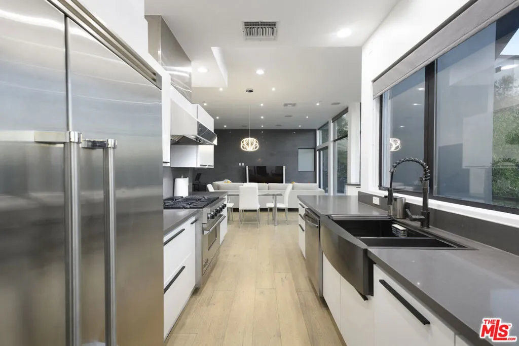 Contemporary Beverly Hills home on a private and secluded street. Tri-level home with an ELEVATOR and VIEWS from every room. The bottom level has 3 guest quarters and a bonus room to be used as a bedroom or office which leads right into a state-of-the-art theater room. Go out to the outdoor deck with an infinity pool and spa. BBQ and/or relax on the sizable deck and get some good sun and gorgeous views. Or, access a private gym! The "entrance level"boasts an open floor plan. The formal living room has a fireplace and wet bar and it connects to the dining area that leads right into the Kitchen jeweled with top-of-the-line Viking appliances. The kitchen opens up to the family room with floor-to-ceiling windows! The 3rd level has spacious primary quarters with a private entrance. The large primary bath has a separate steam shower and a step-up spa tub. A few steps take you to the rooftop deck - also, with a direct entrance. Great for entertaining! Other features include designer elements throughout, security/camera system, and a speaker system. Minutes away from the center of Beverly Hills, West Hollywood, or Sherman Oaks. Get the best of the best on a star-studded street!