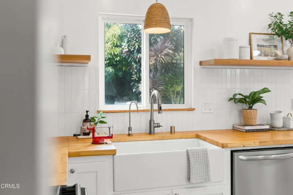 Welcome to a Westside Ventura retreat where Spanish-inspired architecture meets a fresh, modern feel. This 3-bedroom, 2-bath home is full of character, with arched passageways, warm wood accents, topped with mountain and lush setting views. The kitchen features open shelving, custom tile, and a clean mix of textures that give it a refined atmosphere. Curated tile work carries through to the bathrooms, creating a cohesive design.Natural light pours in through large windows, giving the home a bright, airy feel throughout. Each bedroom is comfortable and well-designed, with overhead lighting.Ample outdoor space in front and back. Enjoy a front deck with mountain views and out back, the space opens into a private, garden-style setting with a charming gazebo, mature greenery and fruit trees, and room to relax or entertain. Enjoy an ocean-view deck moment off the shed offering an opportunity to further enhance the home's connection to its coastal setting. Ideally located on Ventura's sought-after Westside, the home is just moments from Downtown Ventura's shops, restaurants, and vibrant local scene, as well as the nearby beaches. Enjoy easy access to the coastal bike path, offering scenic rides stretching from Ojai to Carpinteria, perfect for everything from morning rides to full-day coastal adventures. With convenient freeway access nearby, commuting or heading out of town is effortless.