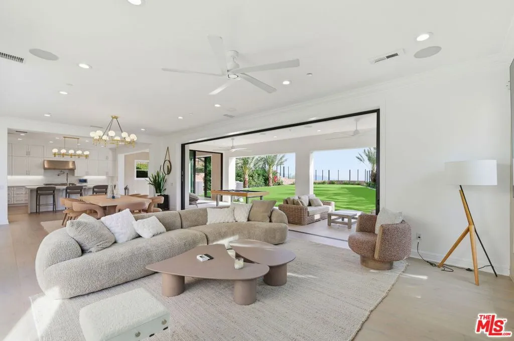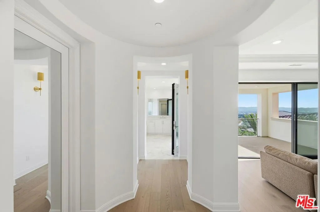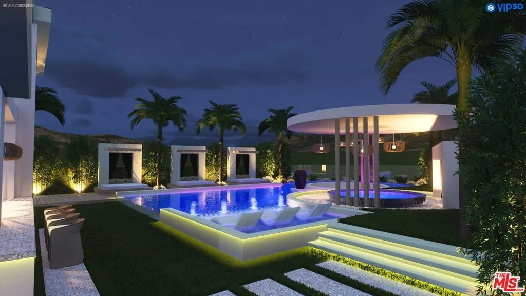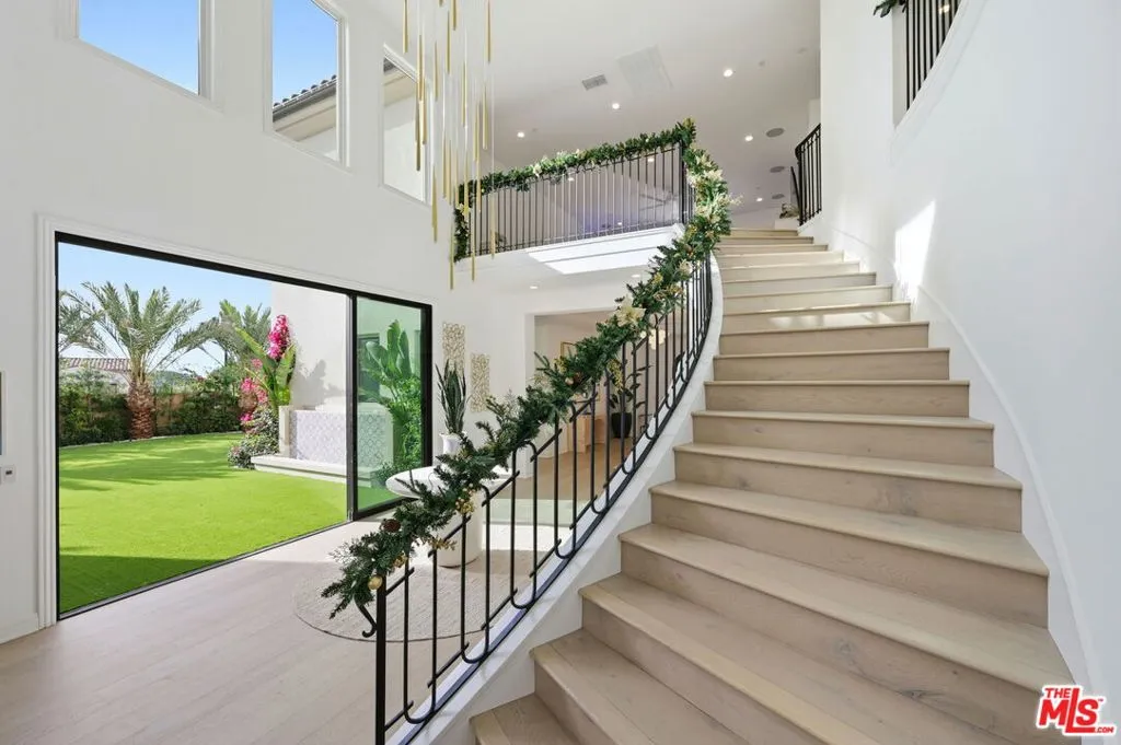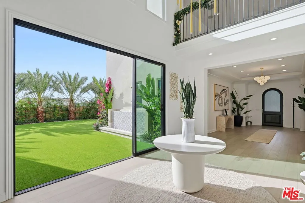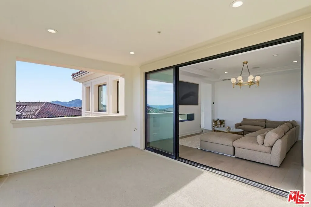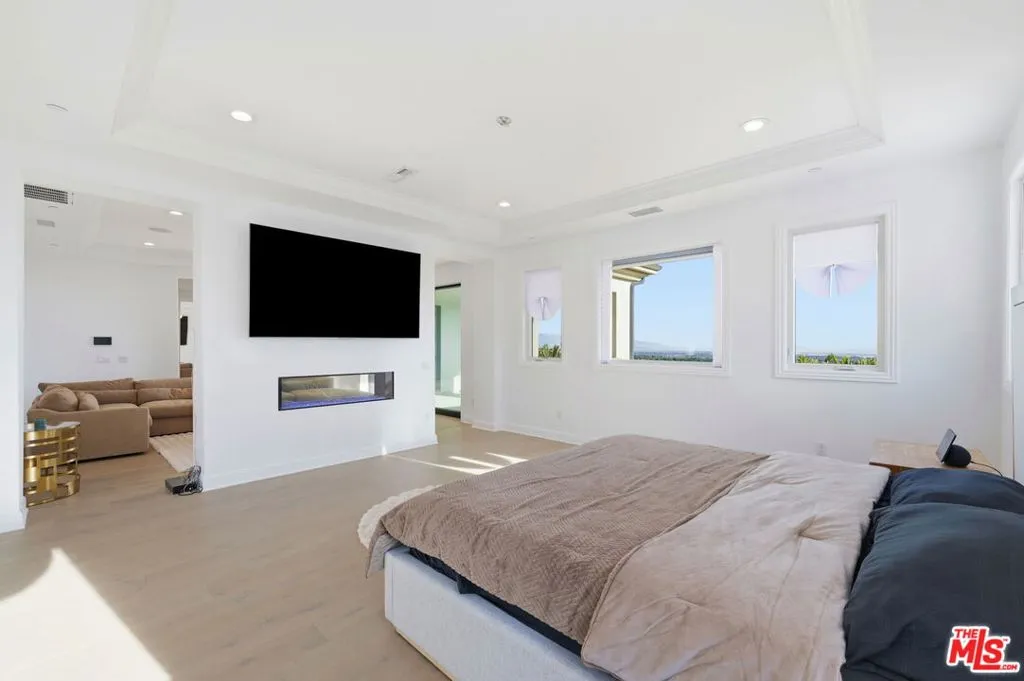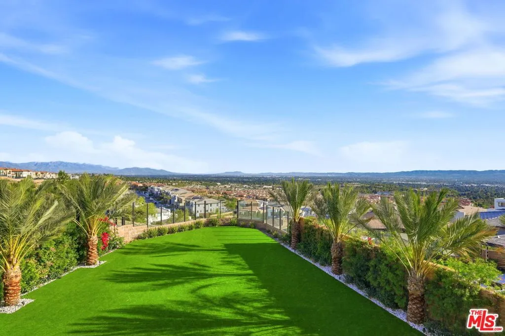 VIEW, VIEW, VIEWS! Set on an amazing oversized 14,142 sq. ft. lot, this Palisades floor plan is located in the prestigious guard-gated community of Westcliffe at Porter Ranch. This stunning residence showcases some of the most breathtaking, unobstructed city and mountain views in the community. A striking arrival sets the tone, featuring Italian stonework throughout the driveway and entry, ambient step lighting, and tranquil water features. Inside, a grand foyer with soaring ceilings, a statement chandelier, and a dramatic staircase is complemented by natural oak hardwood flooring throughout. Designed for both everyday living and elevated entertaining, the open-concept layout seamlessly connects the formal dining area to a chef's kitchen outfitted with an oversized waterfall island, Sub-Zero refrigerator, Wolf appliances, built-in Wolf coffee system, pot filler, and a spacious walk-in pantry. The great room is anchored by a sleek linear fireplace and enhanced by expansive 20' x 8' glass pocket doors, creating effortless indoor-outdoor flow.Upstairs, a loft-style family room thoughtfully separates the living spaces. The primary suite is a true retreat, featuring a private balcony with sweeping San Fernando Valley views and a spa-inspired bathroom complete with Calacatta marble countertops, dual vanities, a soaking tub, walk-in shower, and an oversized custom walk-in closet. Three additional en-suite bedrooms, each with generous closet space, complete the upper level.The backyard offers a rare combination of scale and potential, featuring brand-new turf, a covered patio with fireplace, and ample flat space to design a resort-style setting. Permitted pool plans with renderings are included, offering a seamless path to creating a custom outdoor oasis with a pool, spa, and outdoor kitchen.Additional highlights include surround sound throughout, fully paid solar panels, and three-car garage. Conveniently located near The Vineyards shopping center, Whole Foods, AMC, award-winning schools, and the 118 freeway, this is a rare opportunity to own one of Porter Ranch's most prestigious and breathtaking estates.