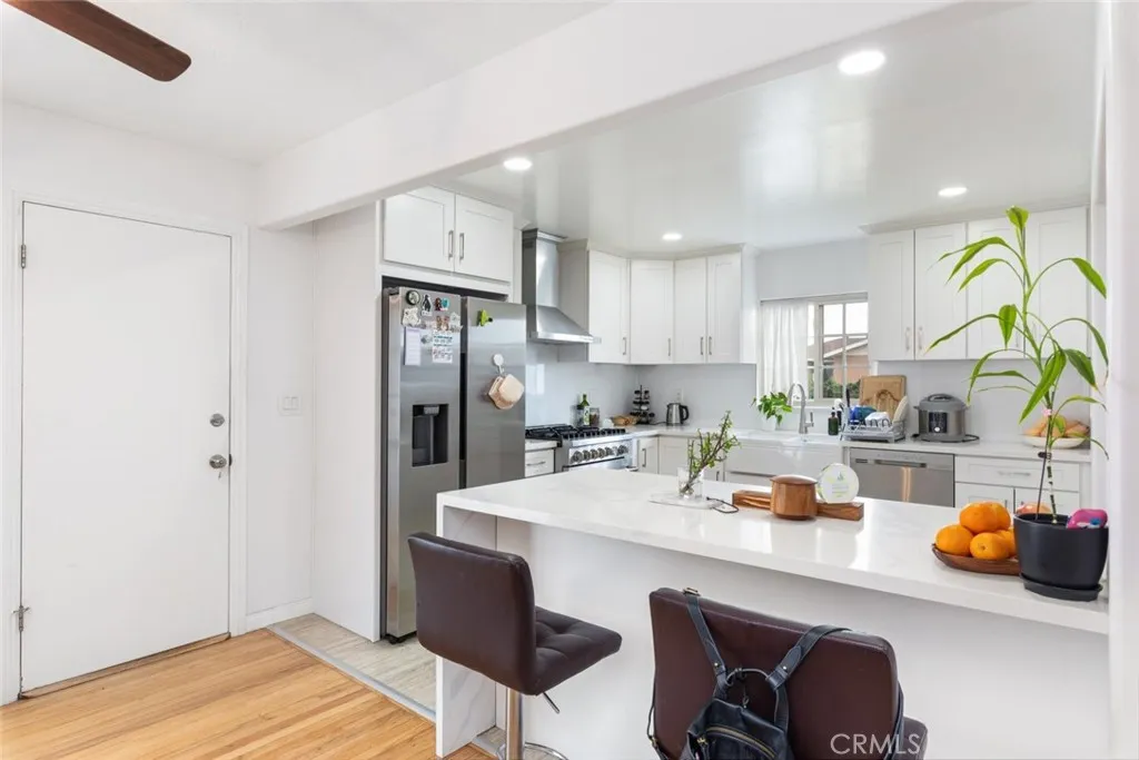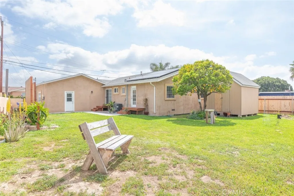 Welcome to this beautifully updated single-family home nestled in the heart of San Diego's Encanto neighborhood, offering stunning west-facing views of the downtown San Diego skyline right from your own backyard. The remodeled kitchen is a true standout, featuring white shaker cabinetry, quartz countertops, a waterfall center island with bar seating, stainless steel appliances including a gas range and built-in range hood, a farmhouse sink, and recessed lighting — all flowing seamlessly into the dining and living areas. Warm wood flooring runs throughout the main living spaces, complemented by large windows that fill the home with natural light. The spacious primary bedroom includes direct access to the backyard, while two updated bathrooms offer designer tile finishes and modern fixtures. Step outside to a generous, grassy backyard where you can enjoy those sweeping city views, relax under a mature citrus tree, or entertain on the patio. A detached storage shed adds practical storage, and rooftop solar panels help keep energy costs low. Completing the package is an attached two-car garage, a wide driveway, and inviting curb appeal with a slate tile walkway and manicured front lawn. Centrally located with easy freeway access, and just minutes from downtown San Diego, shopping, dining, and all the best the city has to offer.