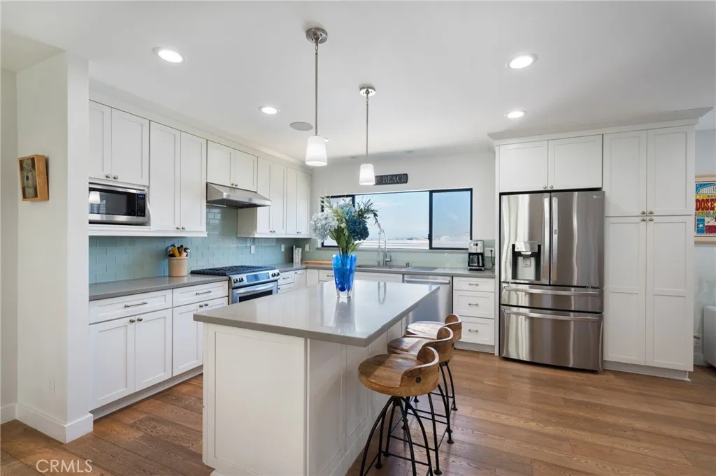 Welcome to coastal living in the highly sought-after Lower Hollywood Riviera, where ocean views, thoughtful upgrades, and an exceptional lifestyle come together. This beautifully remodeled home offers sweeping ocean views from every window, including The Queen’s Necklace and the Hollywood Sign on a clear day. A full interior remodel opened up the main living spaces, creating a bright, connected layout centered around a stunning living room with a sleek gas fireplace, quartz surround, and custom stainless steel railings. The kitchen has been completely reimagined with quartz countertops, Kraftmaid cabinetry with pull-outs and custom storage, a large single-basin sink, Hansgrohe fixtures, and updated appliances. It flows seamlessly into the dining and living areas, making it perfect for both daily living and entertaining. Throughout the home, you will find engineered hardwood flooring, recessed LED lighting, integrated ceiling speakers, custom shutters, and thoughtfully updated finishes. All bathrooms have been remodeled, including a spa-like primary suite featuring a Hansgrohe Raindance shower system, custom wainscoting, and updated vanity and fixtures. Recent improvements include HVAC and water heater (2025), updated flooring and interior paint (2023), basement waterproofing (2026), and refreshed outdoor patio spaces. The home is also equipped with Cat 5 wiring, built-in media connections, and added storage solutions, including overhead garage racks. The HOA is a top notch and maintains one of the lowest dues in the South Bay. The community has also benefited from major exterior upgrades including siding, garage doors, and ongoing improvements. Located just moments from the beach, Esplanade, and Riviera Village, this home offers easy access to dining, shopping, and everyday conveniences, all within a neighborhood known for its charm, community feel, and relaxed coastal pace. Enjoy sunset views from your patio, ocean breezes throughout the day, and the best of South Bay living right outside your door.