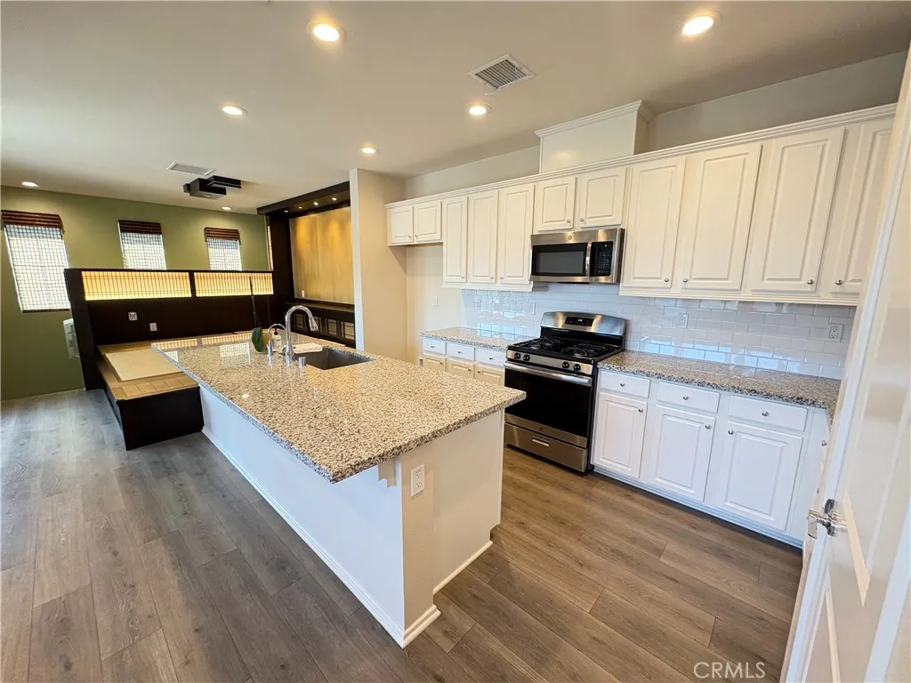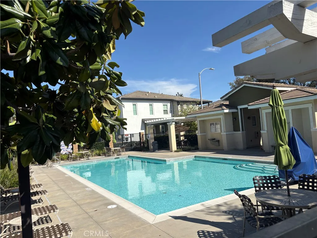 Marvelous 2 bedroom and 2 bathroom townhouse in Ontario. This 2019 built home features high ceilings and an open floor plan. Kitchen includes granite countertops, stainless steel appliances, food pantry, and an abundant amount of cabinet space with a huge kitchen island that opens to the Great Room. Unique dining room showcases an elegant Japanese-style Tatami, great for guests! Just off the Great Room there is a comfortable balcony great for relaxing and entertaining. Primary suite is very spacious and the bathroom includes dual sinks, walk-in shower, and soaking tub. Primary suite also includes a walk-in closet with built-in organizer to maximize storage capabilities. 2nd bedroom is also decently sized. Hallway bathroom includes upgraded glass sliding doors. This home also features an individual Laundry Room with washer and dryer hook ups, and storage cabinets. 2 car garage with direct access. Community features swimming pool. Easy access to the 60 FWY. Solar Powered for energy efficiency. Trash is included in rent.