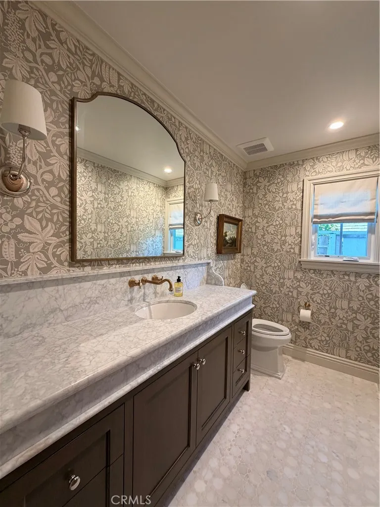 Positioned on the inner loop of the Port Streets in Newport Beach, 1961 Port Cardigan Place introduces a fully reimagined residence defined by elevated design, scale, and seamless indoor-outdoor living. Located near Anderson Elementary and situated on the same street as the school’s entrance, the home offers convenient access to the campus within one of the neighborhood’s most established settings. Reconstructed in 2025 and designed by Alicia Torosian Design, this residence was featured on the 2026 Corona del Mar Home Tour. Thoughtful design and high-quality craftsmanship are evident throughout, with custom finish carpentry, cabinetry, stonework, wallpaper, and integrated furnishings creating a cohesive and refined interior environment. French white oak extends across flooring, ceilings, doors, shutters, and into the finished garage, reinforcing a consistent architectural aesthetic. Designed for both everyday living and entertaining, the open-concept layout offers a natural flow between living spaces. Each bedroom is appointed with its own ensuite bathroom, providing comfort and functionality. The kitchen serves as a central gathering space, featuring Thermador appliances, an oversized skylight, and a custom backsplash, all opening to the main living areas. The outdoor setting is equally compelling, with a generously scaled backyard offering space for entertaining, recreation, or relaxation. Additional features include on-site RV parking, adding versatility to the property.