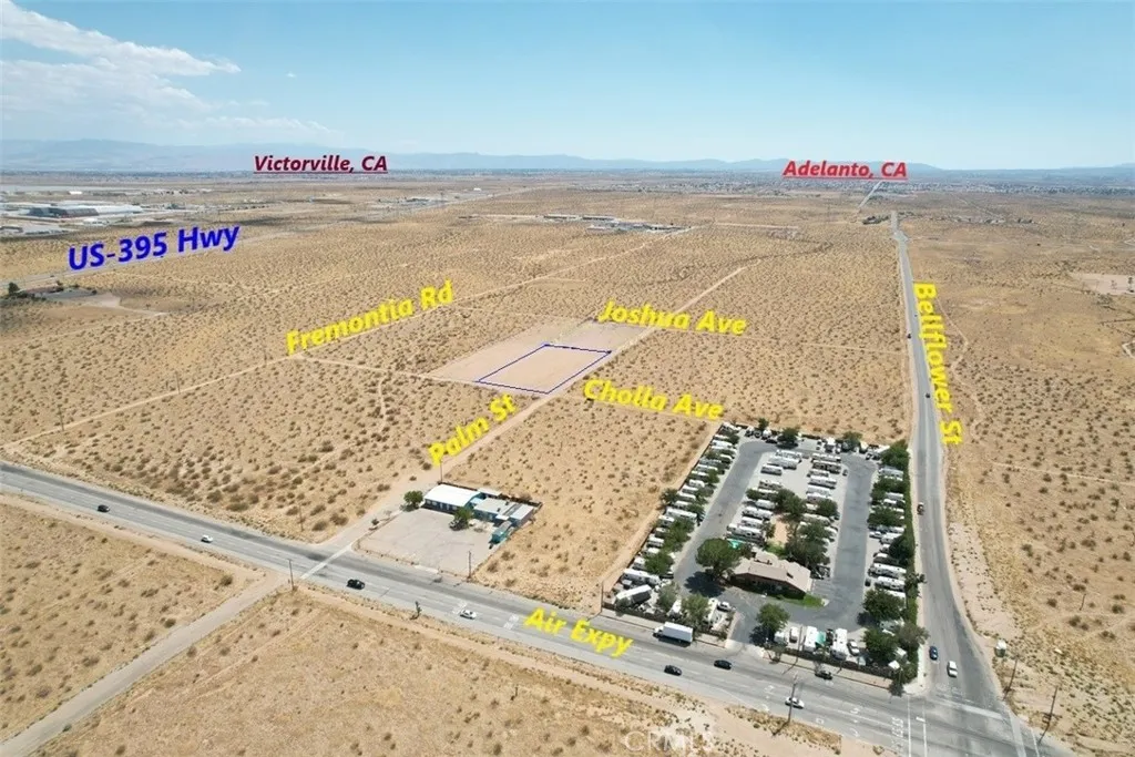 Investors and Developers take a look at these 1 acre property, located in a prime location projected for growth, currently zoned Mixed Use (MU)(12-18 du/pa in Adelanto, CA, utilities close to property: electricity about 300+/-ft east of the property on Fremontia Rd, sewer, Water, and gas is about 600+/- ft north of property on Air Expy, approximately frontage 135ft, length 300ft rectangular lot. 3 adjacent parcels also owned by same owner and will consider offer on additional parcels, corner markers on property, , located just 200+/-FT, 0.4mi. west from US-395 Hwy, about 2.5+/-miles southwest of the Southern California Logistics Airport (SCLA), close proximity to Northwest Pipe Company, Amazon, & Dr Pepper Snapple Co., (buyer and buyer’s agent to verify utilities for availability connections),Google maps coordinate to the sign on the northwest corner of the subject property are: 34.569722, -117.415889, Bring your offers