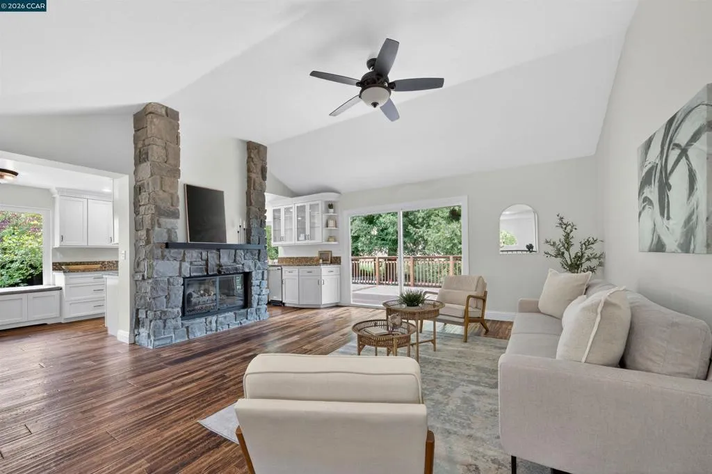 Tucked into a peaceful, tree-lined setting on a .26-acre lot backing to open space, this 4-bedroom, 3-bath home offers approximately 2,268 sq. ft. plus a large BONUS ROOM not included in the square footage. A back gate provides direct access to the open space and trail, creating a serene connection to nature right from your backyard. Freshly painted inside, the home features high ceilings, a 3-car garage, and a flexible layout with two spacious living areas upstairs alongside the kitchen, primary suite, a bedroom with a built-in desk making it perfect for an office, and a full bath. The primary suite overlooks the backyard, offering a quiet and private retreat. Downstairs, you’ll find two additional bedrooms, a full bath, and an expansive bonus room with a wine cellar and abundant storage space. With a pool, peaceful surroundings, and room to spread out, this home offers a wonderful blend of comfort, function, and natural beauty. Feeds to highly-rated Valhalla Elementary, close to Hidden Lakes Park, convenient to Highways 680 & 4 and shopping/restaurants.
