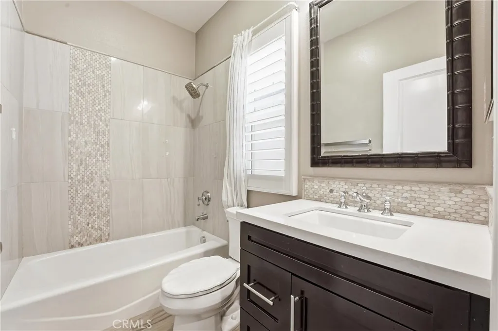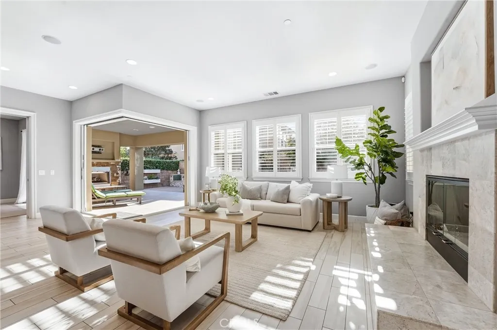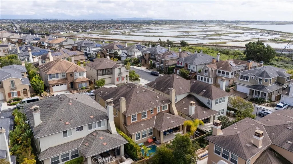 Welcome to 17491 Oakbluffs Lane, a rarely available residence in the prestigious Brightwater community of Huntington Beach. Offering 5 bedrooms and 5.5 bathrooms—each with its own en-suite—this exceptional home blends coastal elegance with refined, functional design. An expansive, light-filled open floor plan is enhanced by recessed lighting, dual-pane windows, and custom shutters throughout. The home features wood plank-style tile flooring downstairs, vinyl plank flooring upstairs, and plush new carpet in the bedrooms, creating a warm yet sophisticated aesthetic. At the center of the home, a true chef’s kitchen impresses with an oversized island, KitchenAid six-burner gas range with griddle and dual ovens, beverage and wine refrigerators, and a walk-in pantry. The kitchen flows into the inviting family room with a cozy gas fireplace. Expansive sliding pocket doors create seamless indoor-outdoor living. The covered California room, complete with an outdoor fireplace and TV mount, opens to a resort-style backyard featuring a private saltwater pool and spa with waterfalls, custom lighting, and an in-floor cleaning system—all controllable from your phone. The built-in BBQ area includes space for a smoker, along with an outdoor shower, completing this incredible outdoor retreat.The main level also features a formal dining room and a dedicated office with disappearing doors that open to the patio—perfect for enjoying the coastal breeze while working from home. A desirable downstairs bedroom with a full en-suite bath and dual-sink vanity offers the ideal setup for guests or multigenerational living. Additional highlights include dual-zoned central A/C, two tankless water heaters with instant hot water controls, and a three-car tandem garage with custom storage racks. The home is fully wired with Cat 5 internet throughout for fast, reliable connectivity in every room. Upstairs, the luxurious primary suite is a true retreat, featuring a spa-inspired bath with separate vanities—including a sit-down vanity—a soaking tub, walk-in shower, and a massive custom closet system. Three additional en-suite bedrooms, a versatile loft, and an oversized laundry room complete the upper level. Located steps away from the Huntington Beach wetlands, Brightwater is renowned for its resort-style amenities, including a private clubhouse, fitness center, pool and spa. Residents enjoy scenic walking trails, greenbelts, and playgrounds just steps from the beach.