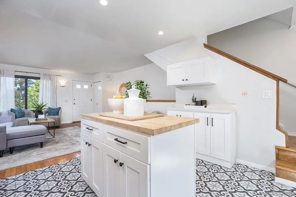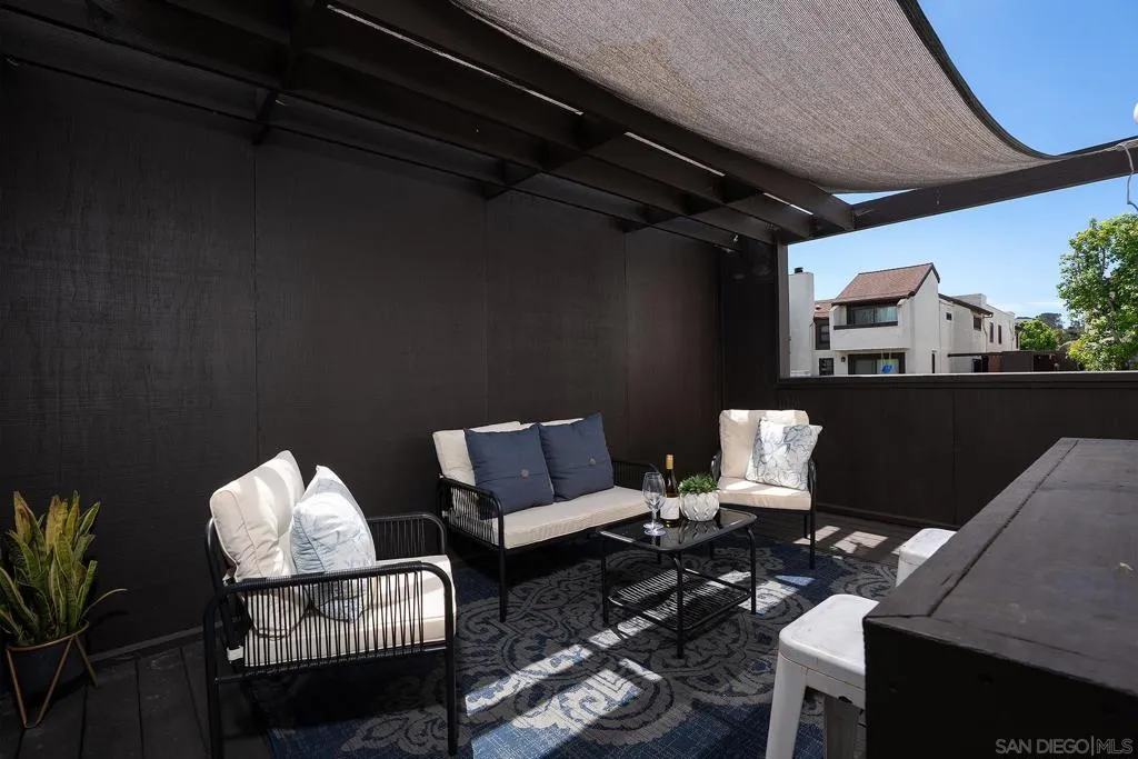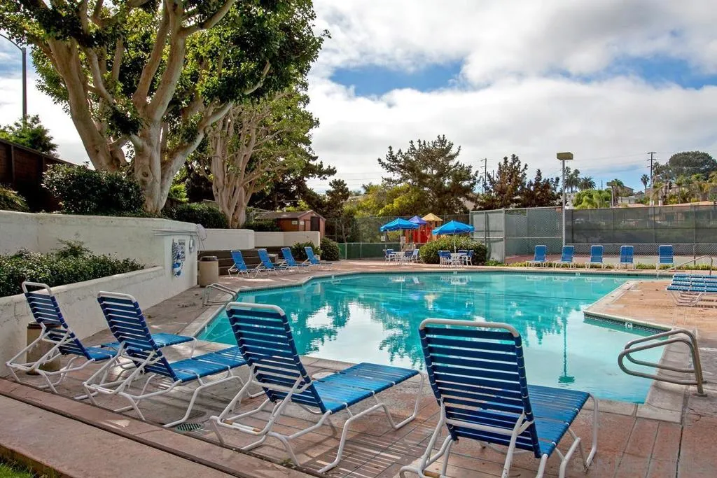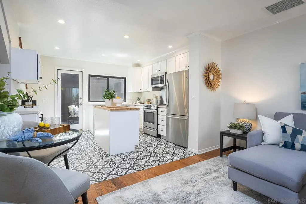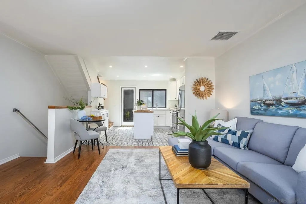 Beautifully updated 2-bedroom, 1-bath townhome located approximately 1.5 miles from the beach and close to everything Point Loma and Ocean Beach have to offer! This light-filled home features an open-concept layout with warm hardwood flooring throughout the main living area and a stylishly renovated kitchen complete with white cabinetry, stainless steel appliances, modern countertops, and a center island ideal for cooking and entertaining. Enjoy seamless indoor-outdoor living with a spacious private wood deck just off the kitchen—perfect for dining or relaxing. Upstairs features two generously sized bedrooms, including a primary bedroom with its own private balcony. Additional highlights include an attached garage with in-unit laundry. The community offers resort-style amenities including a pool, spa, tennis courts, pickleball courts, and a playground. Conveniently located near shops, dining, parks, and freeway access, this home offers the ideal blend of coastal lifestyle, comfort, and functionality—perfect as a primary residence, vacation getaway, or investment opportunity.