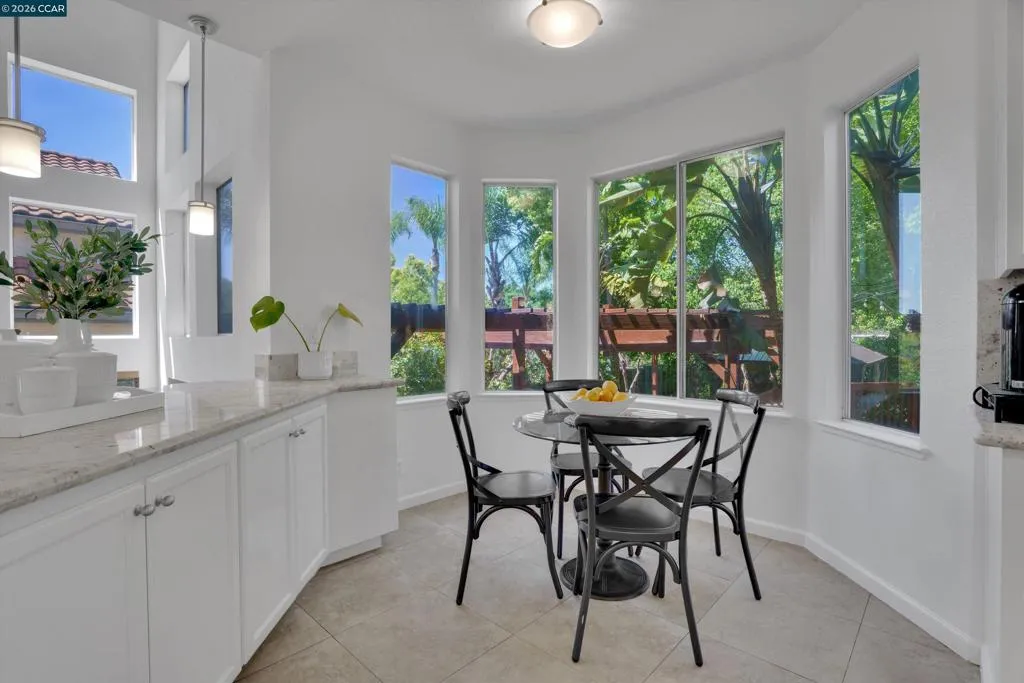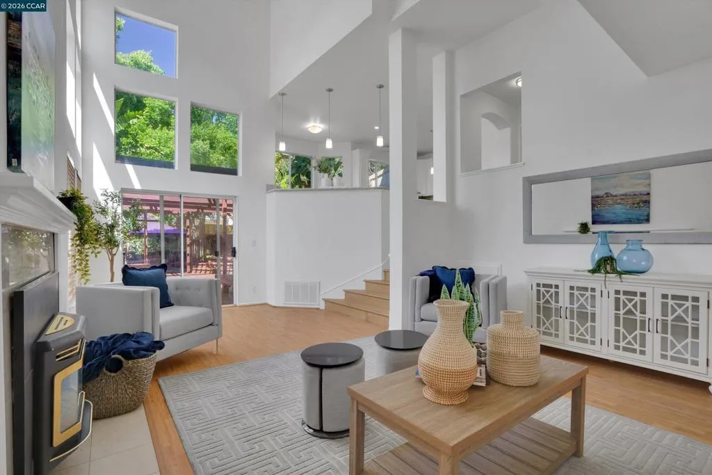 Incredible location in Canyon Creek! Stunning 4 bedroom 2.5 bath with over 2500 sq ft! Gorgeous and light filled, this home has so many bells and whistles! Soaring vaulted ceilings, beautiful columns in the living room, updated kitchen with stainless steel appliances newer lighting, gas range, center island and cozy breakfast nook overlooking the beautifully landscaped backyard! New fresh interior paint, stylish lighting and quaint sunroom! Upstairs you'll find 3 spacious bedrooms plus the luxurious primary suite with spa-like bathroom and spacious walk in closet! One of the best parts of this home is the OWNED SOLAR, save thousands on your electricity bill! You won't want to miss the lovely outdoor space including built in deck, pergola and gazebo on one of the largest lots in the neighborhood! Location is amazing! Minutes to world class hiking trails, Clayton Station, Cal State East Bay, Whole Foods and Peets Coffee! 15 Minutes to Walnut Creek! Don't miss this one!