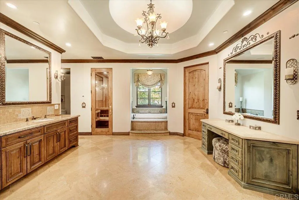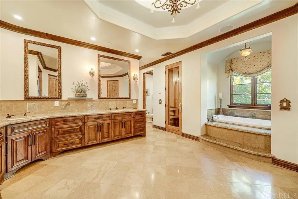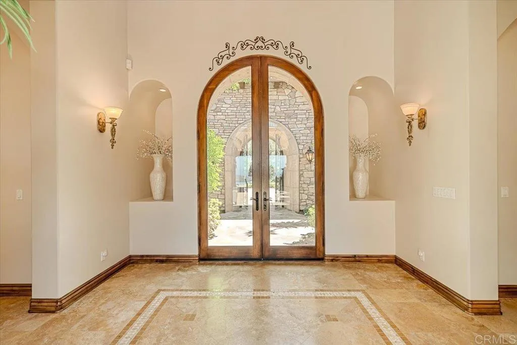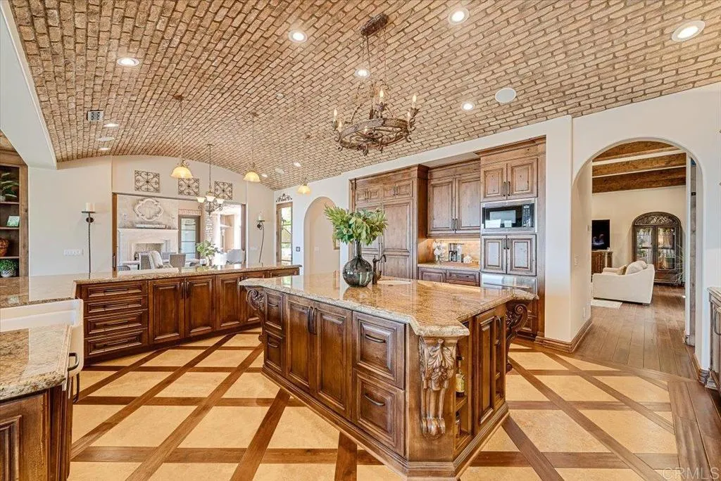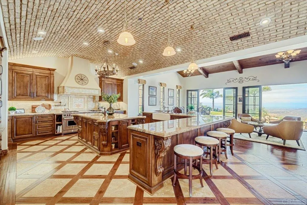 Welcome to 7930 Camino de Arriba located within the prestigious gated enclave of Cielo in Rancho Santa Fe. This rare single-level estate offers breathtaking views stretching from the cliffs of Catalina Island to the snow-capped mountains of Big Bear. Here, sunrise and sunset are daily masterpieces. Designed for exceptional living, this home is a celebration of timeless elegance and unparalleled craftsmanship. Lush landscaping and commanding architectural presence set a tone of refined grandeur and privacy. Inside, soaring ceilings, graceful archways and intricate woodwork showcase 200-year-old reclaimed wood beams and plank ceilings that infuse the home with warmth. The gourmet kitchen is a chef’s sanctuary, appointed with professional-grade appliances, custom cabinetry, and a striking brick barrel ceiling opening seamlessly to the expansive great room where dining, conversation, and relaxation unfold around a massive fireplace framed by custom built-ins. Walls of doors dissolve the boundary between indoors and out, creating a seamless flow for grand entertaining and offering expansive ocean and canyon views. The primary suite is a private retreat of remarkable scale and serenity. Dramatic ceilings, a statement fireplace, and a dedicated sitting room or office create an atmosphere of refined comfort. Thoughtfully designed built-ins include a microwave and refrigerator for ultimate convenience. The spa-inspired primary bath is crowned by a domed ceiling and features a jetted soaking tub, sauna, oversized steam shower, and a custom closet. Each additional bedroom offers en-suite accommodations, ensuring privacy and comfort for family and guests alike. Two of the suites enjoy private access to a tranquil, shaded courtyard. Outdoors, the estate transforms into a tropical paradise. A resort-style infinity pool and spa appear to merge with the horizon. The outdoor kitchen, covered California Room with fireplace, and expansive entertaining terraces invite effortless living. The sky deck delivers unparalleled stargazing at night and secluded sunbathing by day. At sunset, cocktails and charcuterie are best enjoyed around the poolside fire pit, where the silence and privacy of this remarkable property are unmatched. This impeccably designed home, encompassing breathtaking views, is more than a residence—it is an extraordinary experience waiting to be lived.