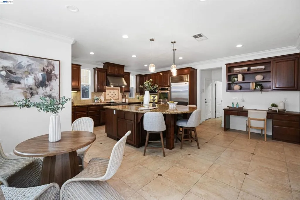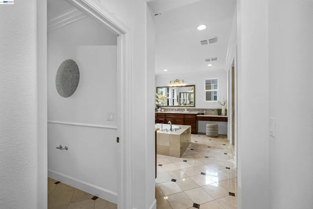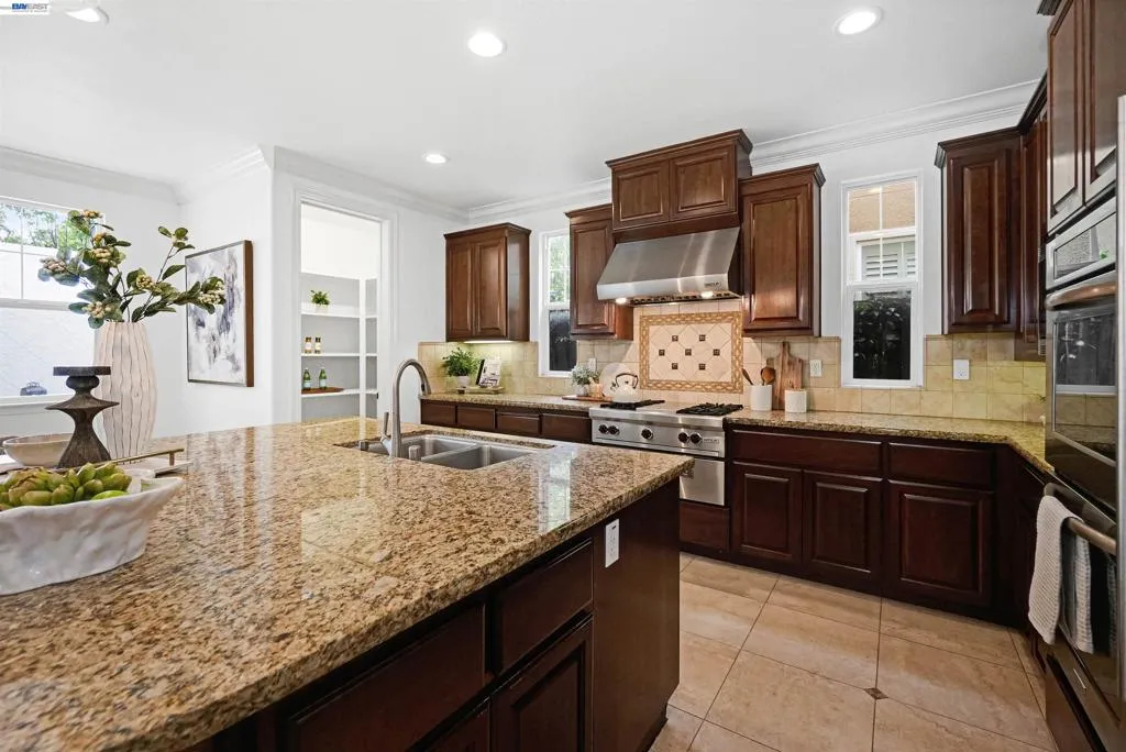 Welcome to Windemere - one of San Ramon’s most sought-after neighborhoods where elegance and refined upgrades are showcased throughout. This beautifully upgraded home features heated tile floors downstairs, hardwood upstairs, crown molding, recessed lighting and a whole-house water softener. The chef’s kitchen boasts walnut cabinetry, Sub-Zero refrigeration, Wolf appliances and KitchenAid double ovens. The family room offers a custom built-in entertainment center, while the primary suite includes a walk-in closet and upgraded jetted tub. Enjoy a private backyard with a pergola, built-in BBQ and dual leased solar systems that are fully paid. The garage is enhanced with custom flooring, built-in storage and a Tesla charger. Close to top-rated schools, parks and scenic trails, this exceptional Windemere home offers elevated living at its finest. Don’t miss the chance to own in one of San Ramon’s most desirable neighborhoods.