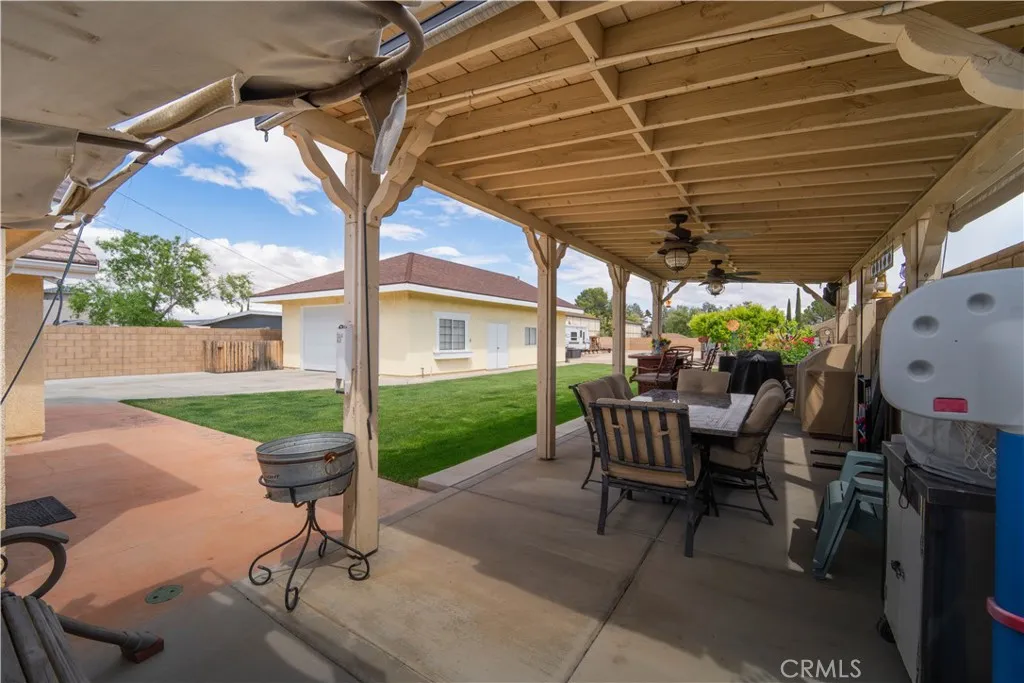 WORKSHOP ON A HALF ACRE! This incredible property sits on nearly an acre with fully block wall fencing and a private gated entry, offering both space and privacy. The home is truly turnkey and has been fully renovated, featuring three bedrooms and two full bathrooms, including a stunning primary suite with a walk-in shower and jetted soaking tub. Inside, you will find engineered hardwood flooring, a real wood burning fireplace that anchors the living space, and beautiful wood ceilings that add warmth and character. The kitchen is thoughtfully designed with granite countertops and custom tile, creating a cohesive and inviting feel throughout the home. The property also includes a fully permitted 25 x 40 workshop with its own bathroom, attic space, additional storage room, water heater, and evaporative cooler, and with an 8.5 foot garage door and 10.9 foot ceilings it is ideal for projects, storage, or business use. The backyard is beautifully manicured and designed for enjoyment, featuring a covered patio perfect for entertaining, a 10 x 12 storage shed, a variety of mature fruit trees including cherry, pear, apricot, peach, and apple, and a thriving garden ready for picking. As part of the Antelope Park Mutual Water Company, this property also offers the benefit of more consistent monthly water costs. This home truly has it all with space, upgrades, and versatility rarely found at this price point. Please call for your appointment today.