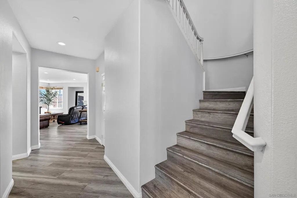 Discover this beautifully maintained home in the highly desirable 4S Ranch community, offering panoramic southeast-facing views that extend toward Stone Ranch Elementary School. Ideally situated near award-winning schools, shopping, parks, and scenic trails, this residence combines comfort, convenience, and an exceptional location. Located in the Cul-de-sac which gives less passing by traffic. The home features 4 bedrooms, 3 full bathrooms, and a main-level half bath, providing a functional layout for everyday living. A 3-car tandem garage offers flexible space, with the extended bay currently used for storage while still accommodating parking for two vehicles. Additional highlights include a Tesla charger in the garage and no solar. Inside, the downstairs laundry room adds convenience with sink, while the kitchen stands out with its extended countertop, perfect for casual dining, working, or entertaining. The open layout enhances flow and usability throughout the main living areas. The backyard is designed for outdoor enjoyment, featuring a built-in BBQ ideal for gatherings, relaxation, and taking in the surrounding views. This home presents a wonderful opportunity to enjoy the best of 4S Ranch living in a thoughtfully designed and well-located property.