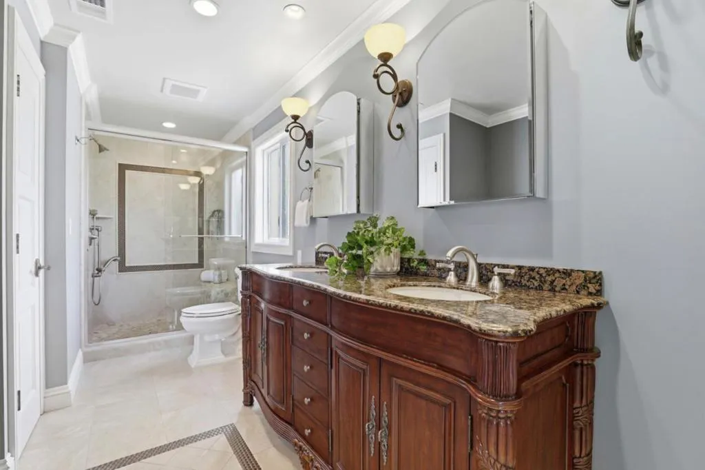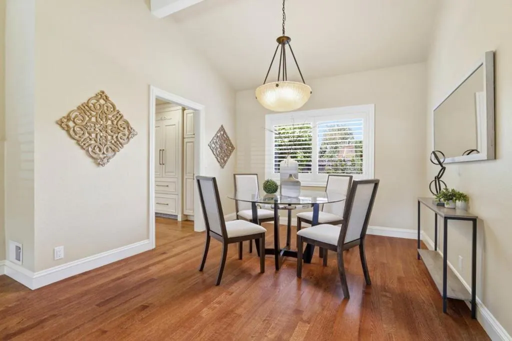 Truly one of the finest homes to come to market, this exceptional home showcases quality craftsmanship, extensive remodeling, and timeless design. Situated on a beautifully landscaped lot, this home offers 4 bedrooms, 2.5 bathrooms, and approximately 2,213 square feet of living space. From the moment you arrive, the home impresses with curb appeal and a covered front porch. Inside, you are greeted by a light-filled floor plan with hardwood flooring, elegant finishes, and seamless indoor-outdoor flow. Enjoy the formal living room and dining area with fireplace and vaulted ceiling. The remodeled chefs kitchen features granite countertops, custom cabinetry, and premium Thermador appliances, opening to the family room for everyday living and entertaining. The spacious primary suite offers a private retreat with an en-suite bath featuring radiant heated flooring and custom cabinetry. The backyard is designed for relaxation and entertaining, with patio areas, lawn, mature landscaping, and a pergola. Additional highlights include A/C, ceiling fans, closet organizers, and a 2-car garage. Located in a highly desirable neighborhood with Cupertino schools (Eisenhower Elementary, Hyde Middle, Cupertino High), minutes to Apple Park, NVIDIA, Santana Row, Valley Fair, and key commute routes.