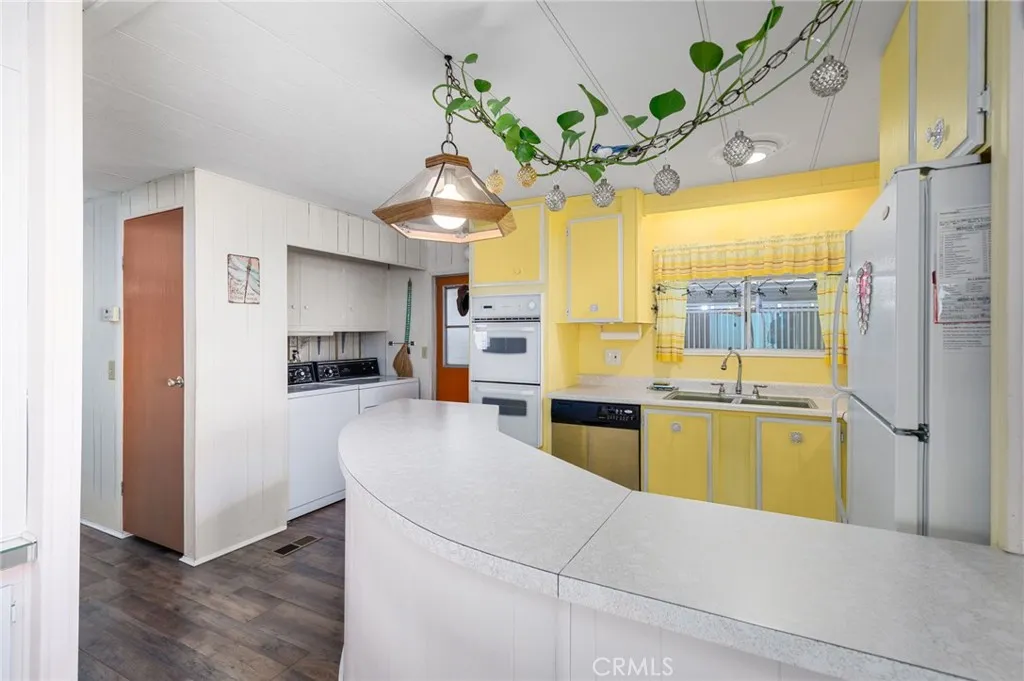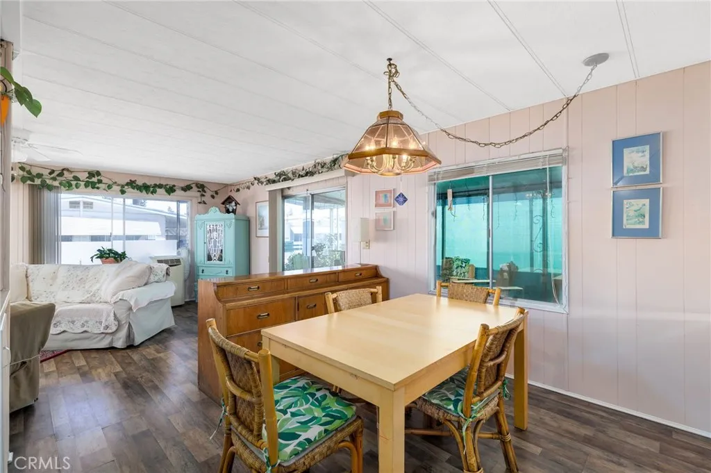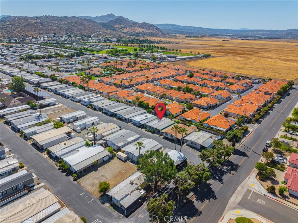2-bedroom, 2-bath home located at 725 W Thornton Ave #163 in a senior community in Hemet. This home features a functional floor plan with a living area, kitchen with cabinet storage and counter space, and designated dining area. The primary bedroom includes an attached bathroom, with a second bedroom and additional full bathroom. Exterior includes a private outdoor space. Property is situated within a senior community with access to nearby shopping, dining, and local amenities.